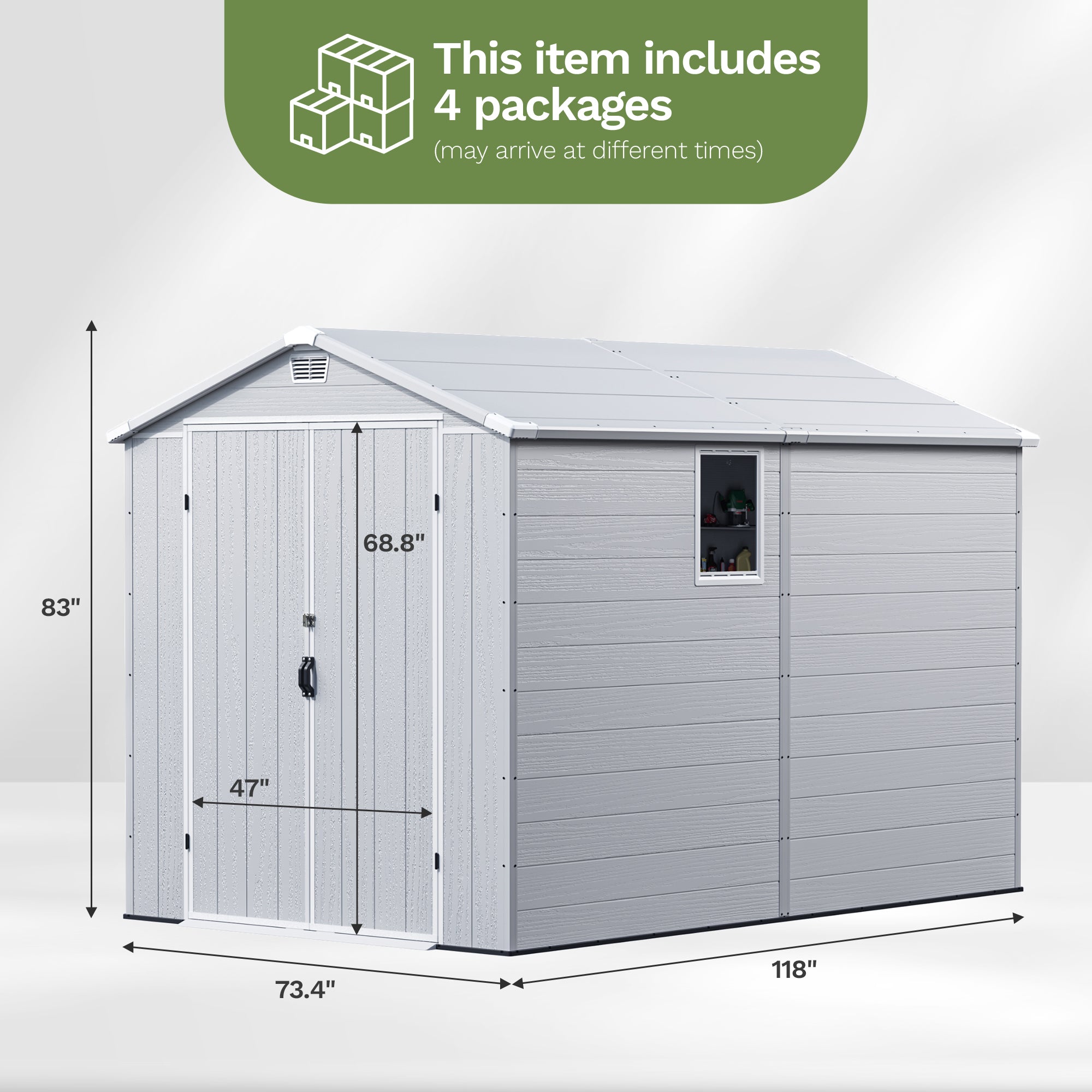 1、All-Season Durability – Made from premium UV-protected plastic, this shed resists extreme sun, rain, and snow, ensuring long-lasting performance without rust, rot, or fading.