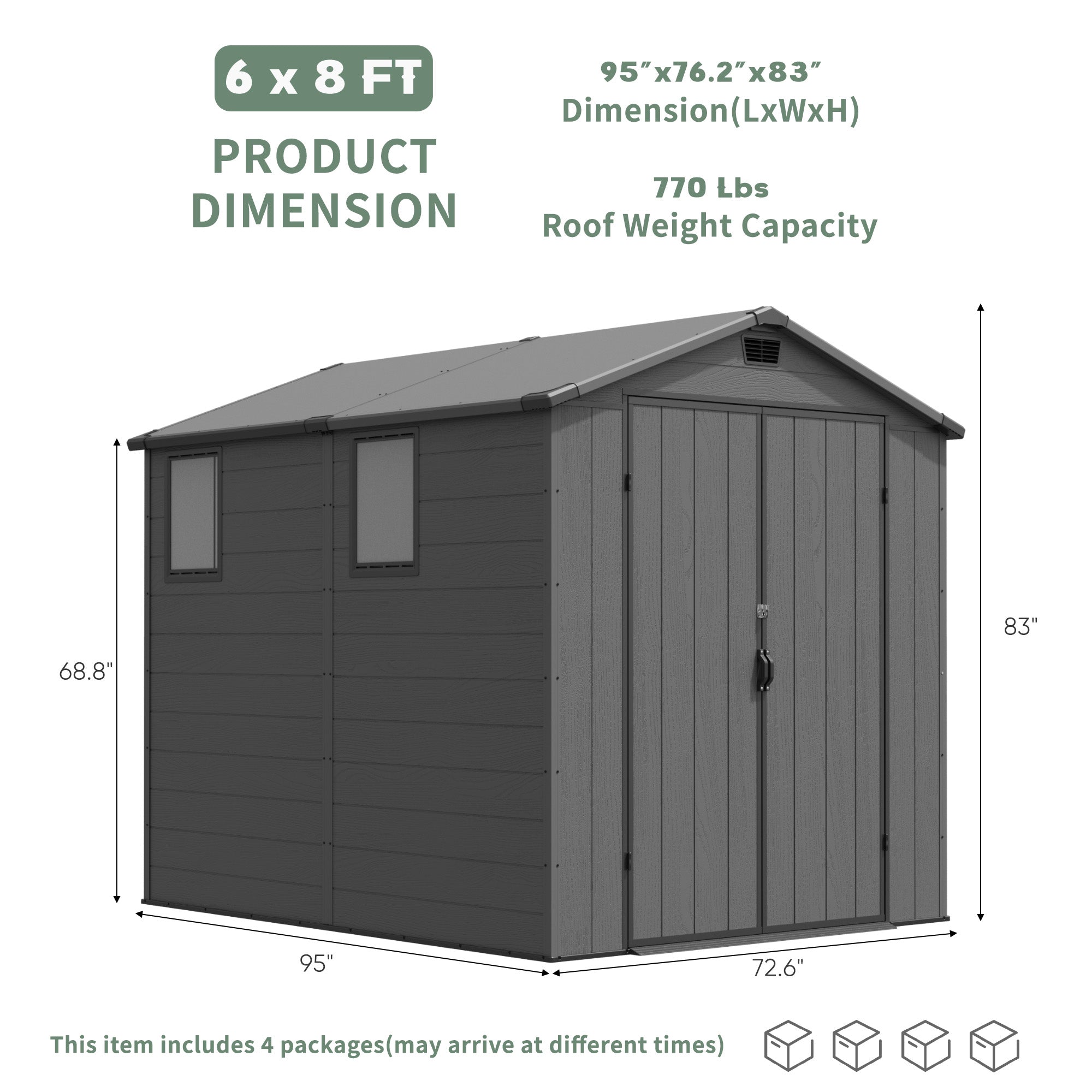 6x8ft Outdoor Plastic Storage Shed with Window,Weather-Resistant, Easy Assembly, Wood-Effect Outdoor Shed for Garden & Tool Storage ,Dark Gray