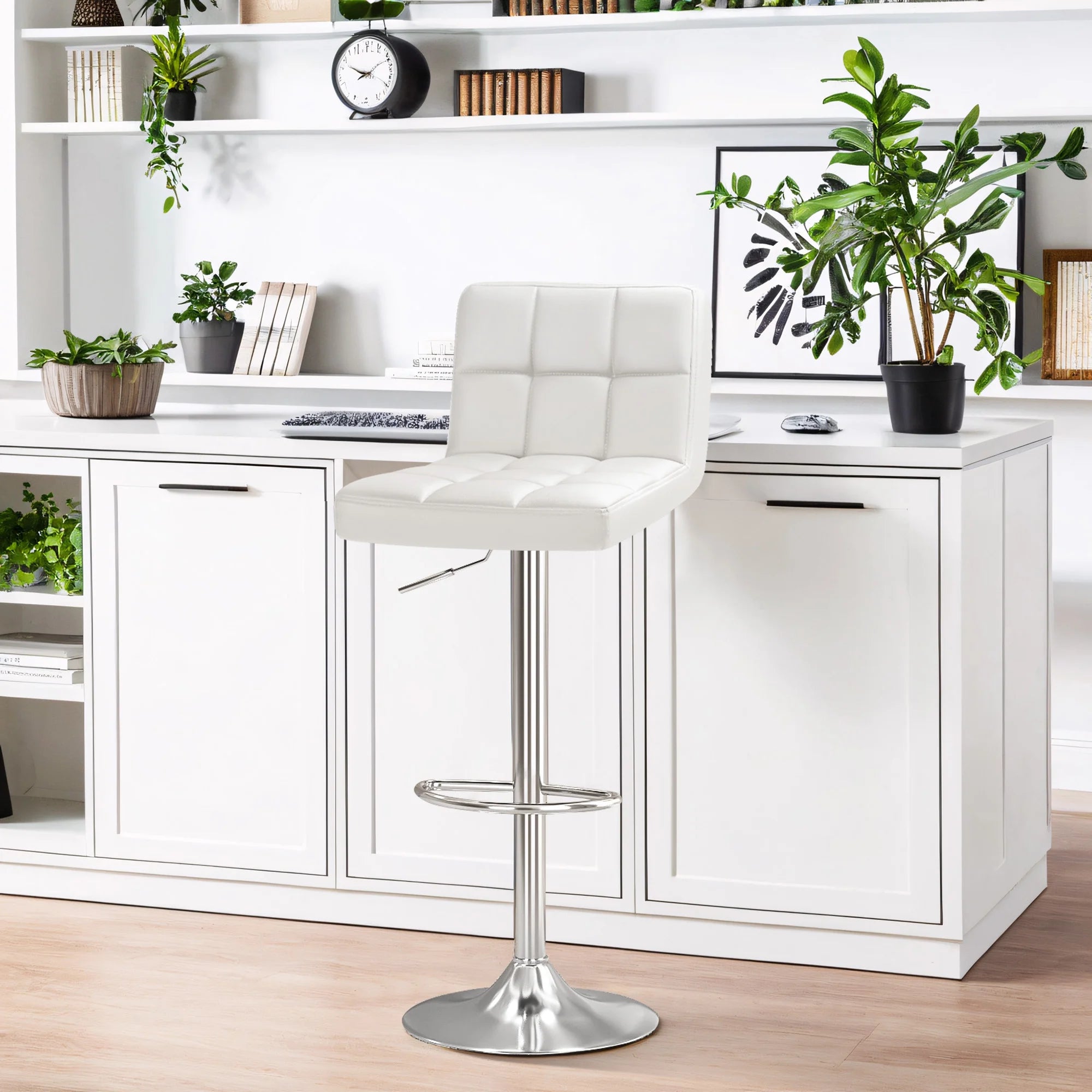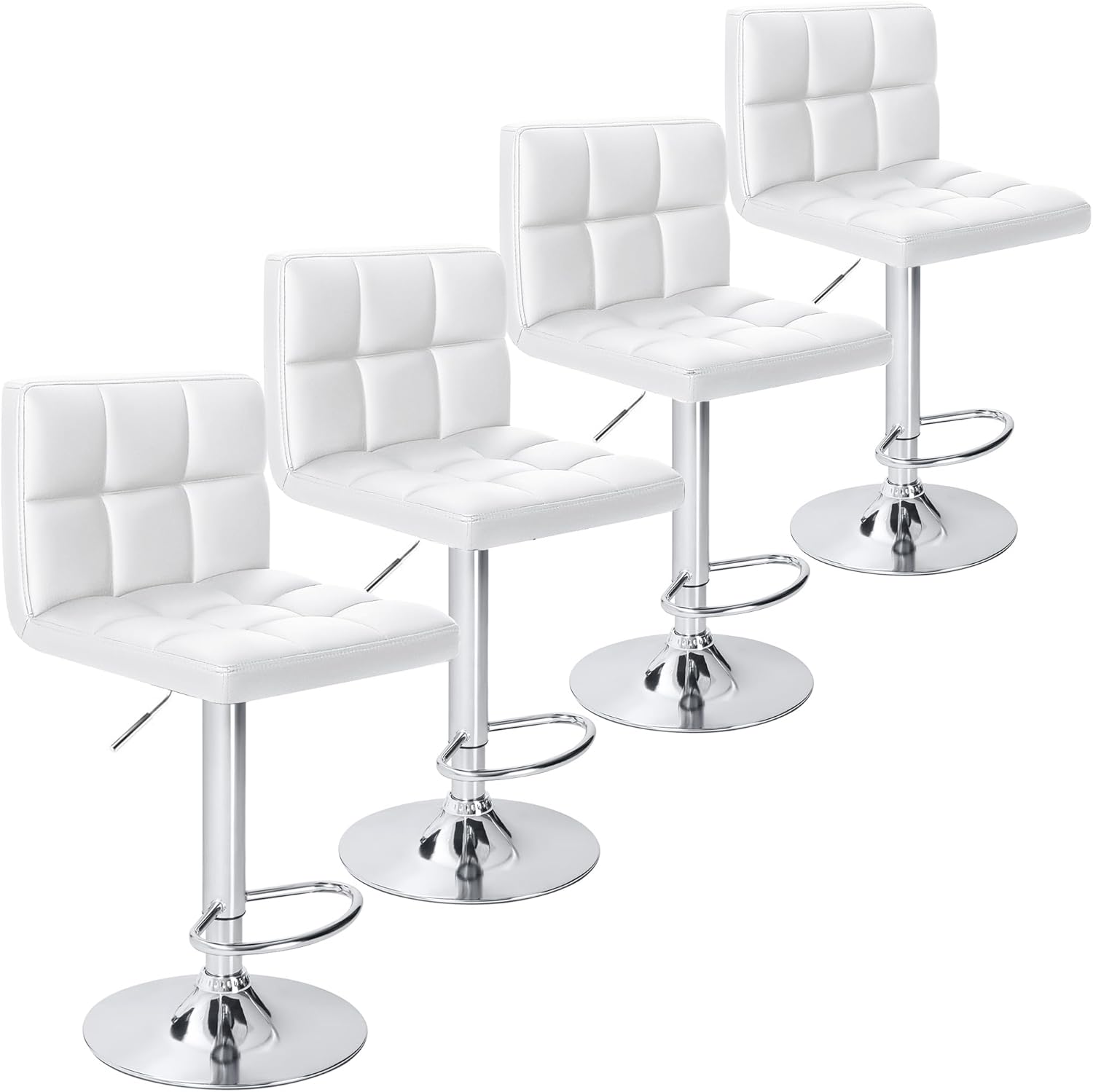 Homall White Adjustable Armless Swivel Bar Stools with PU Leather, Set of