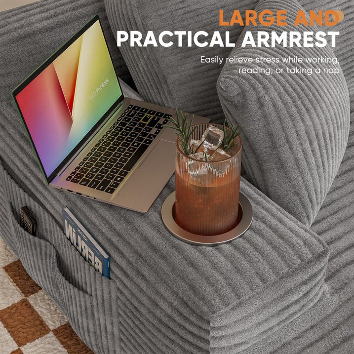- 🛒【U-Shaped Modular Design】Featuring sleek lines and premium plush corduroy fabric, this U-shaped modular set maximizes space efficiency. When placed against a wall, it adds timeless sophistication to living rooms, apartments, and bedrooms, creating an elegant focal point.🛒【Flexible Usage】Ideal for living rooms, apartments, bedrooms, and children's play areas. Each modular piece moves independently through narrow passages, enabling effortless reconfiguration to suit various family needs.🛒【Ergonomic Chaise Design】Crafted with high-resilience sponge structure and spacious seating, this chaise lounge delivers cloud-like comfort. It contours perfectly to your body, providing superior support that surpasses traditional sofas. 🛒【Plush Corduroy Fabric】Sink into the silk-like softness of our plush corduroy fabric. The unique texture and subtle sheen provide year-round comfort, offering gentle pampering that elevates your relaxation experience.🛒【No Assembly Required】Bid farewell to complicated assembly! This minimalist sofa requires no tools—simply unbox and experience cloud-like comfort. It fully expands to its luxurious state within 72 hours, ready for immediate relaxation.