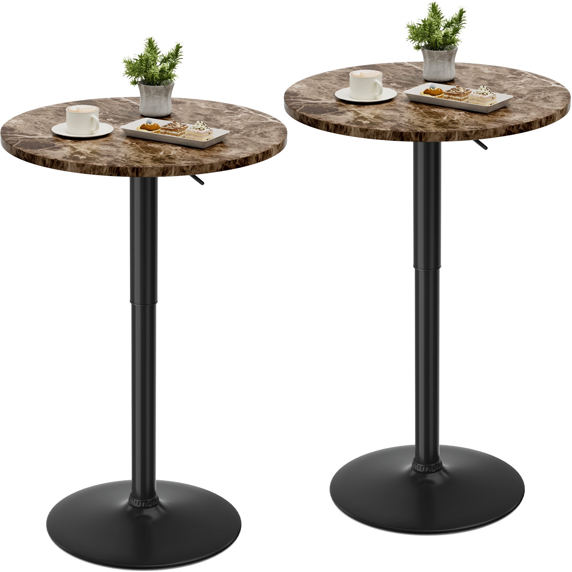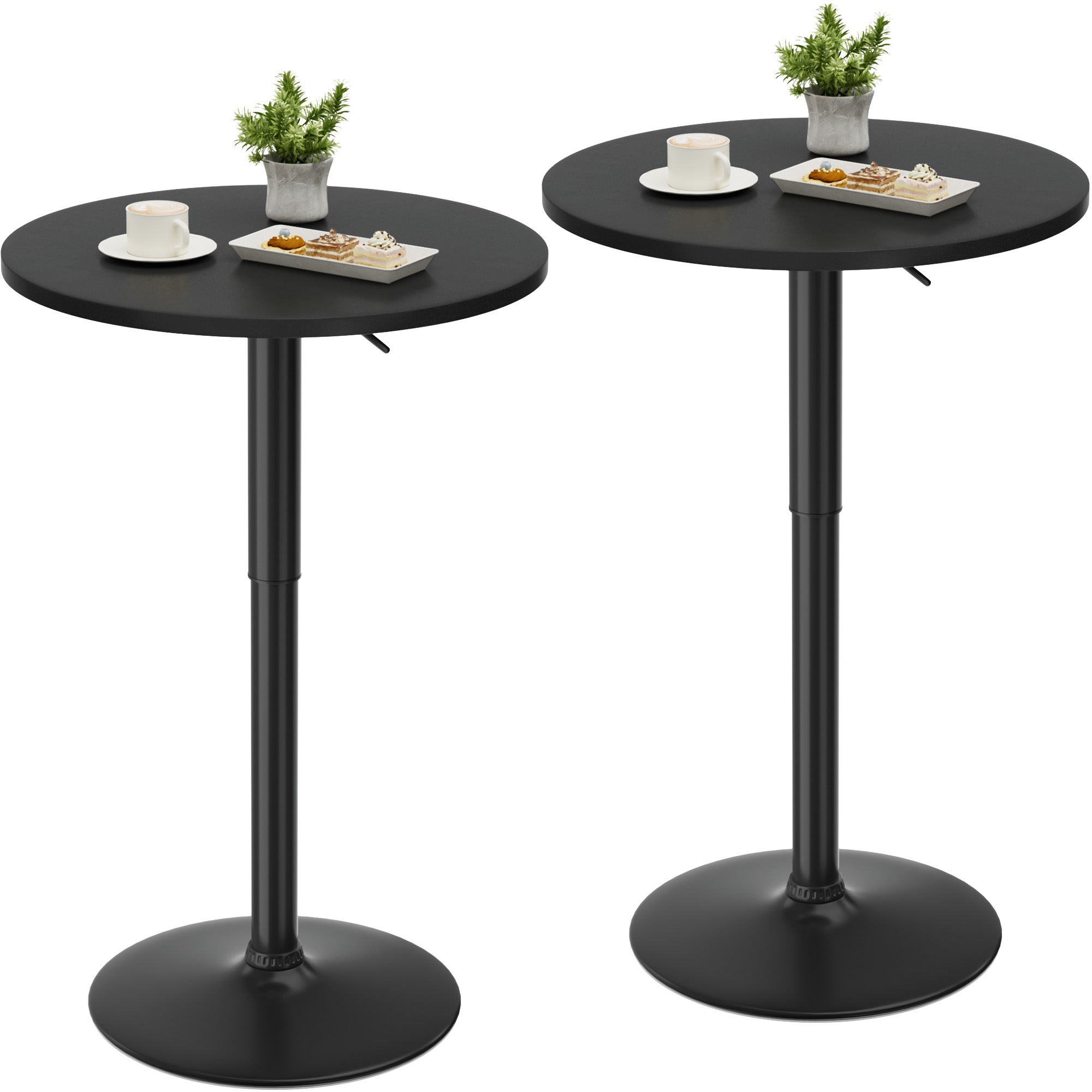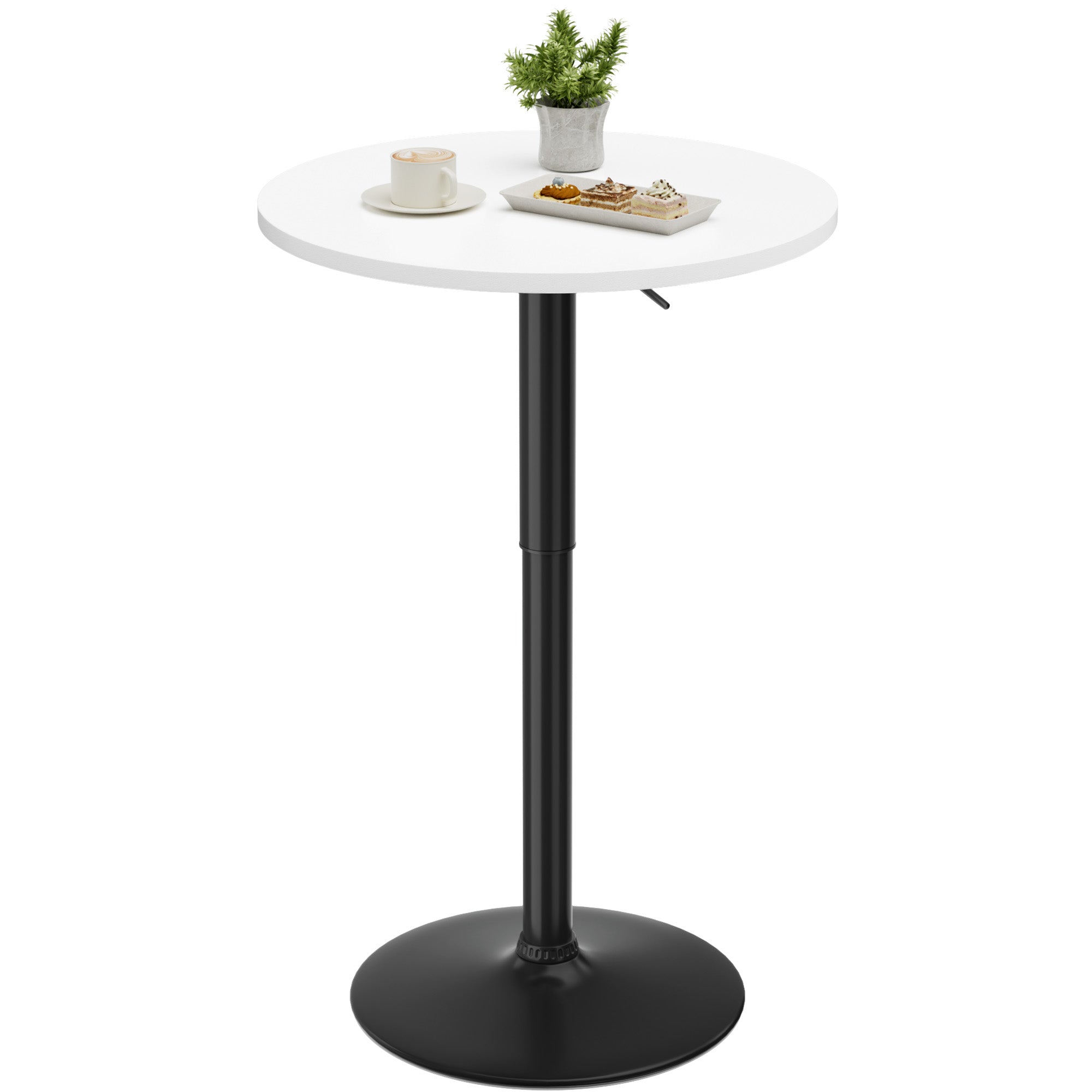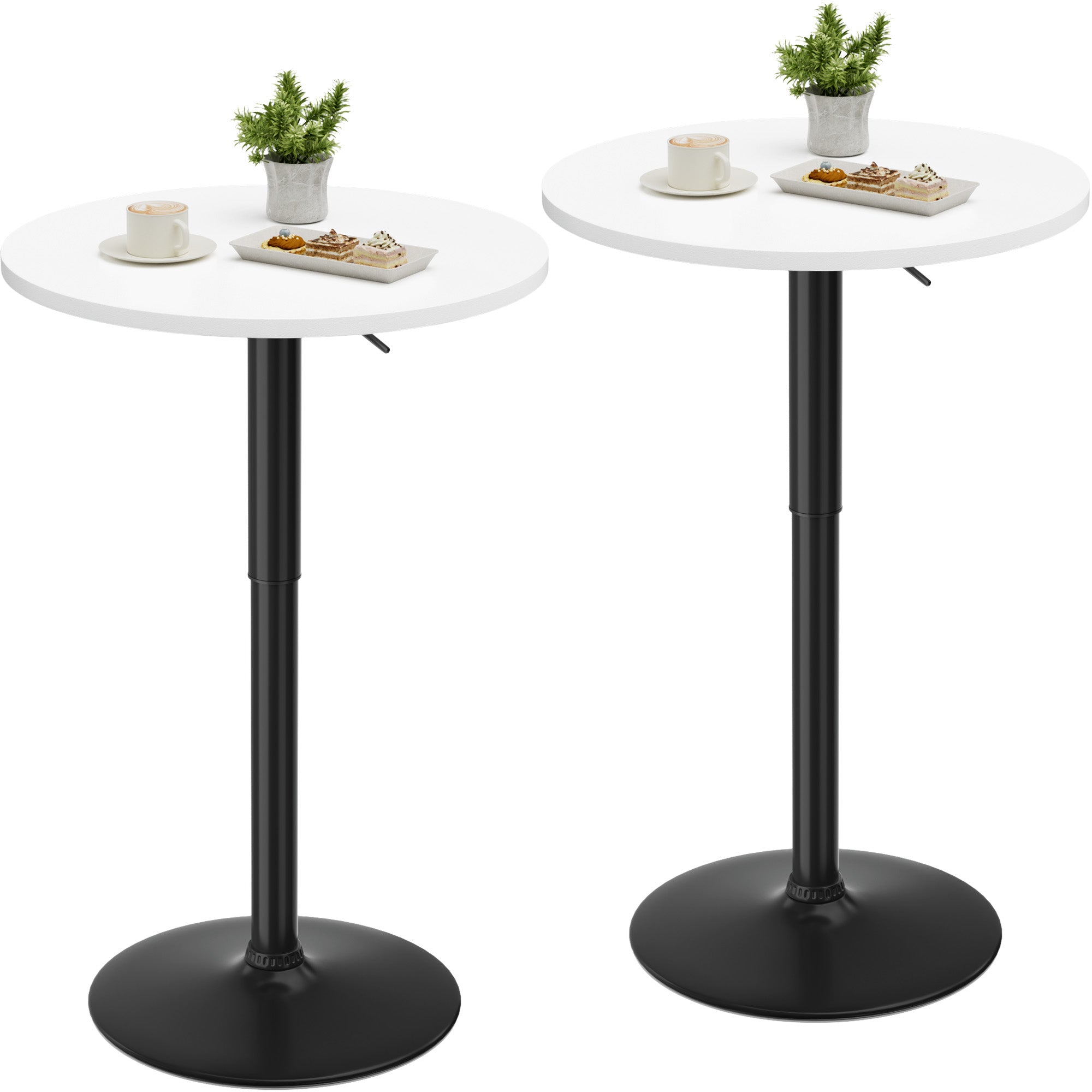 Homall 2 Pieces Bar Table Height Adjustable Bistro Pub Table Cocktail Round Table with Metal Base, White/Sliver