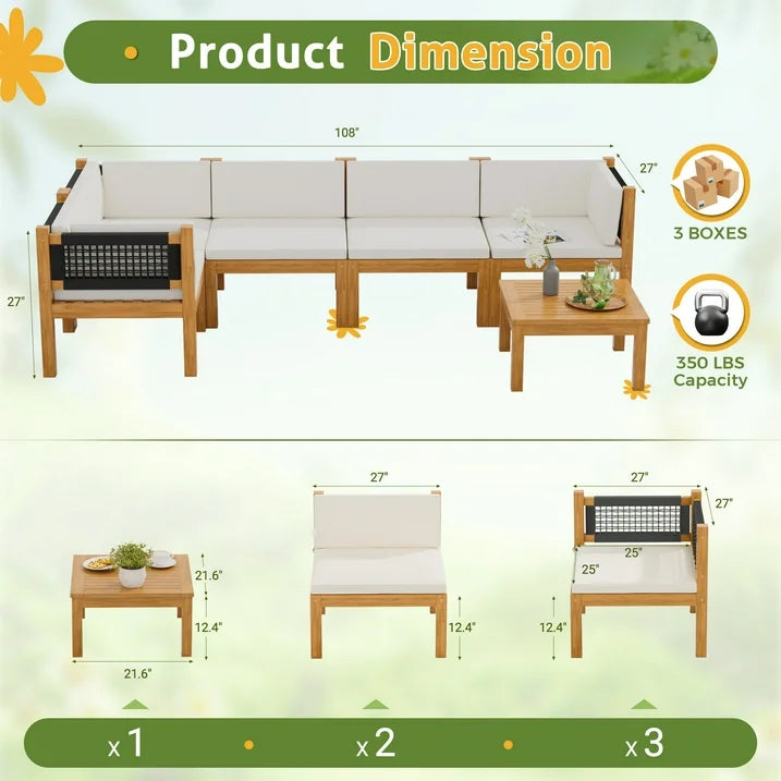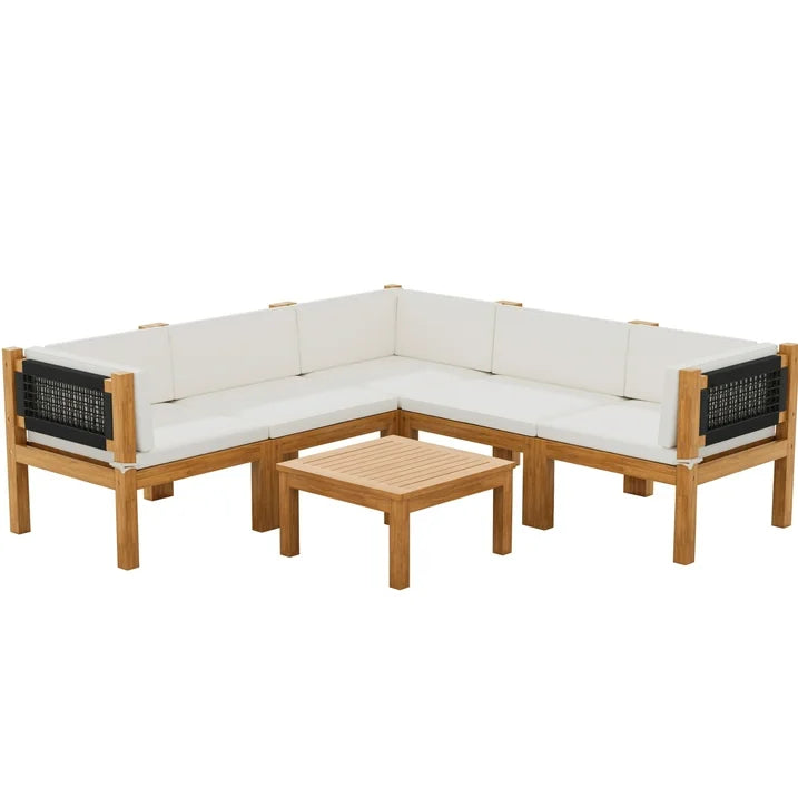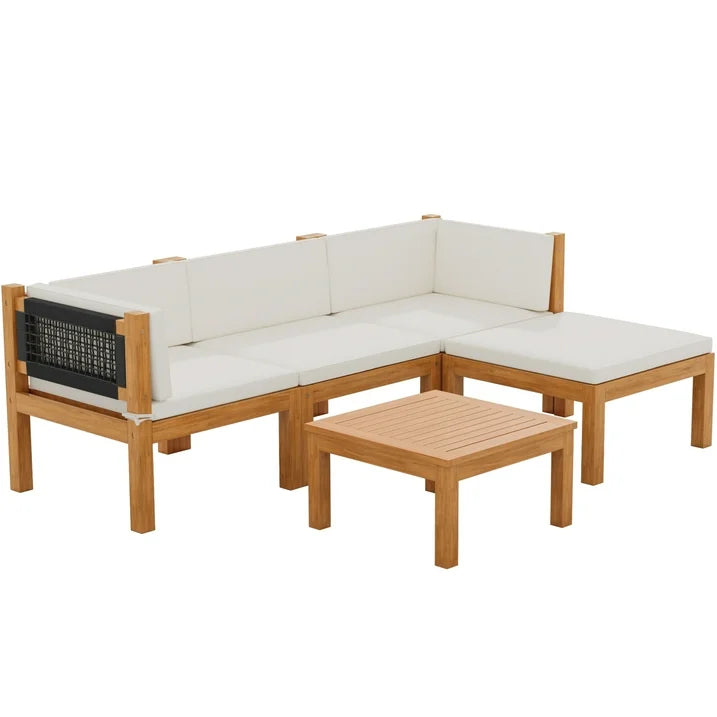 Homall Acacia Patio Conversation Set Wood Sectional Set Outdoor Furniture Set with Cushions, White