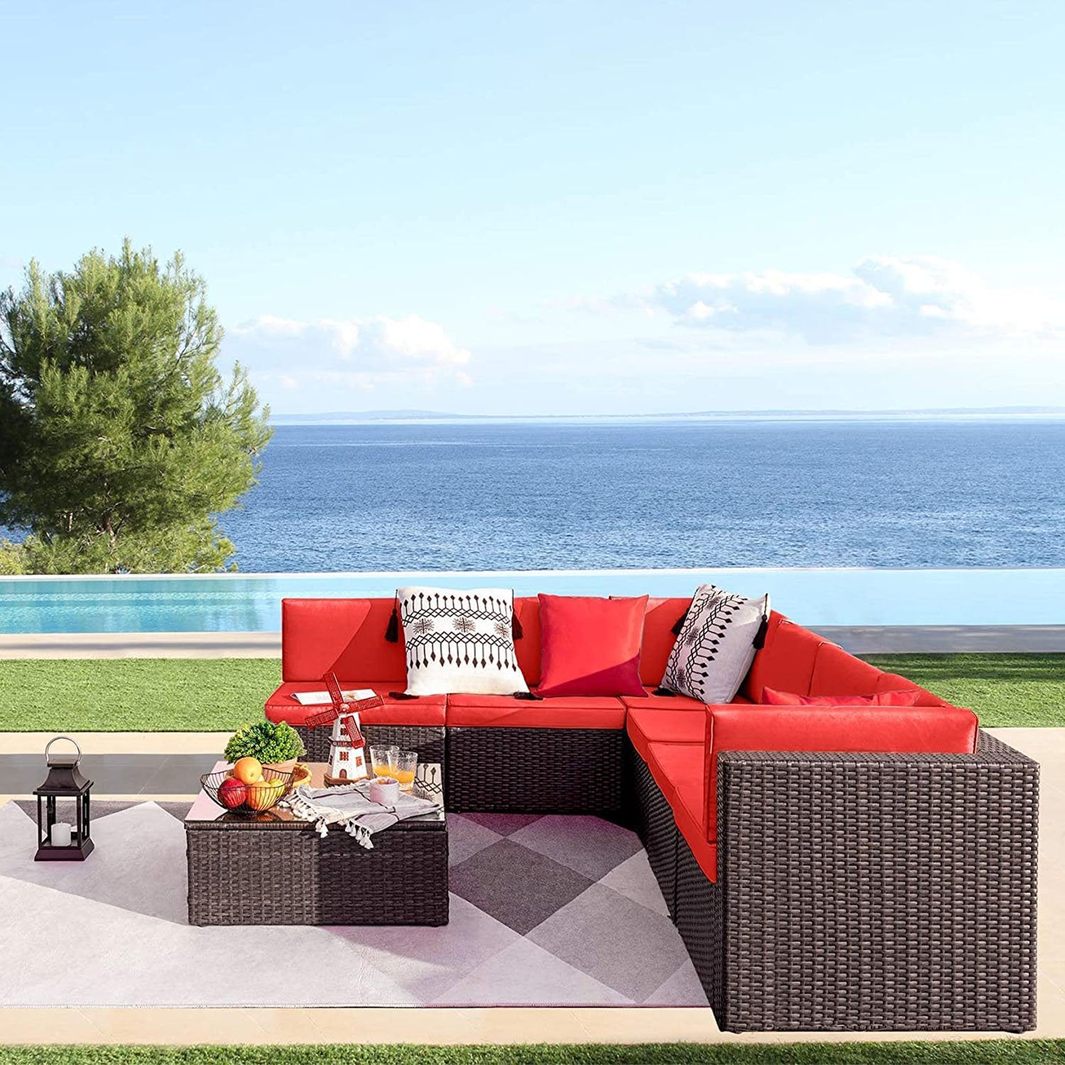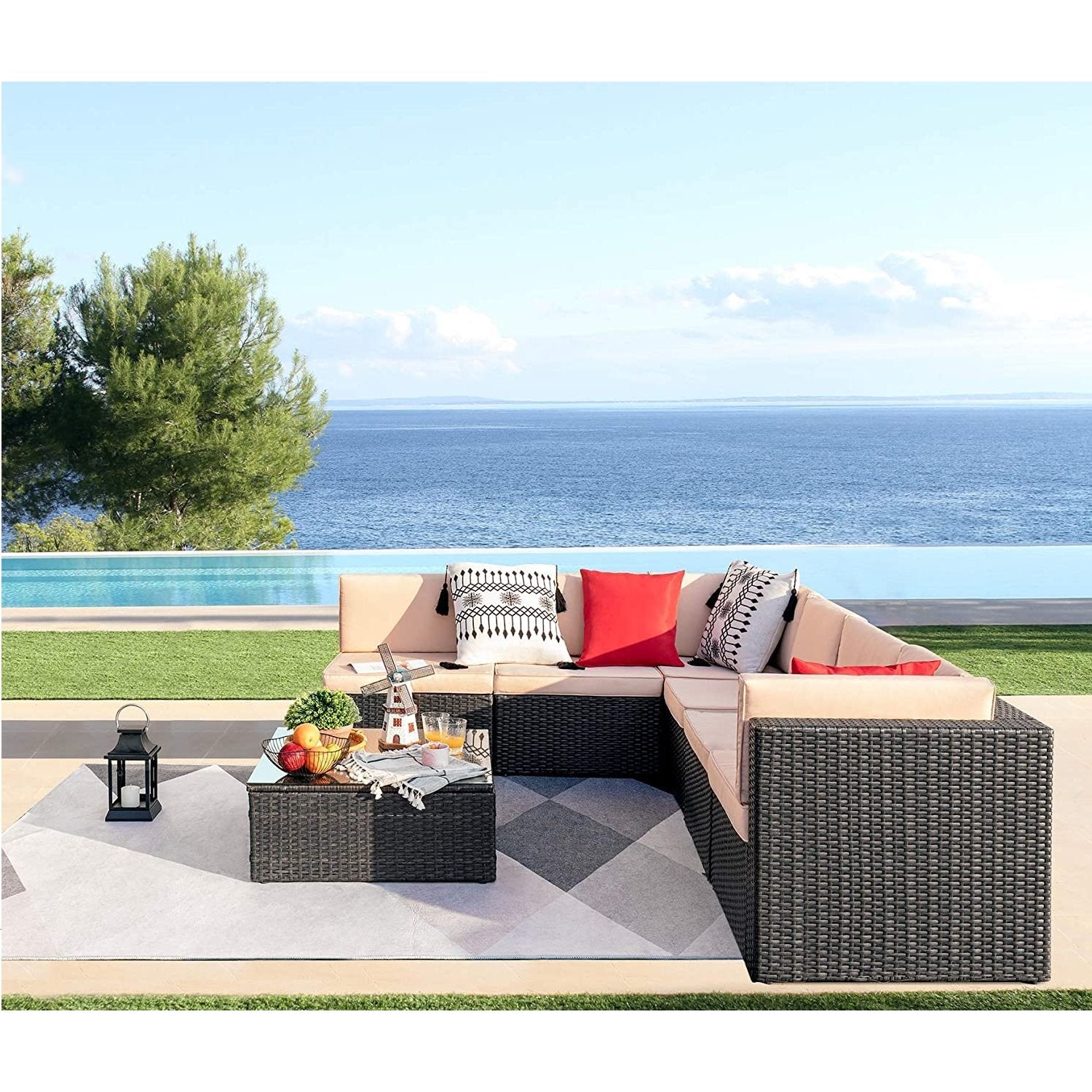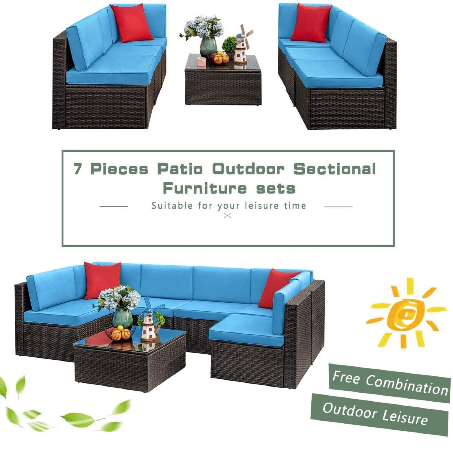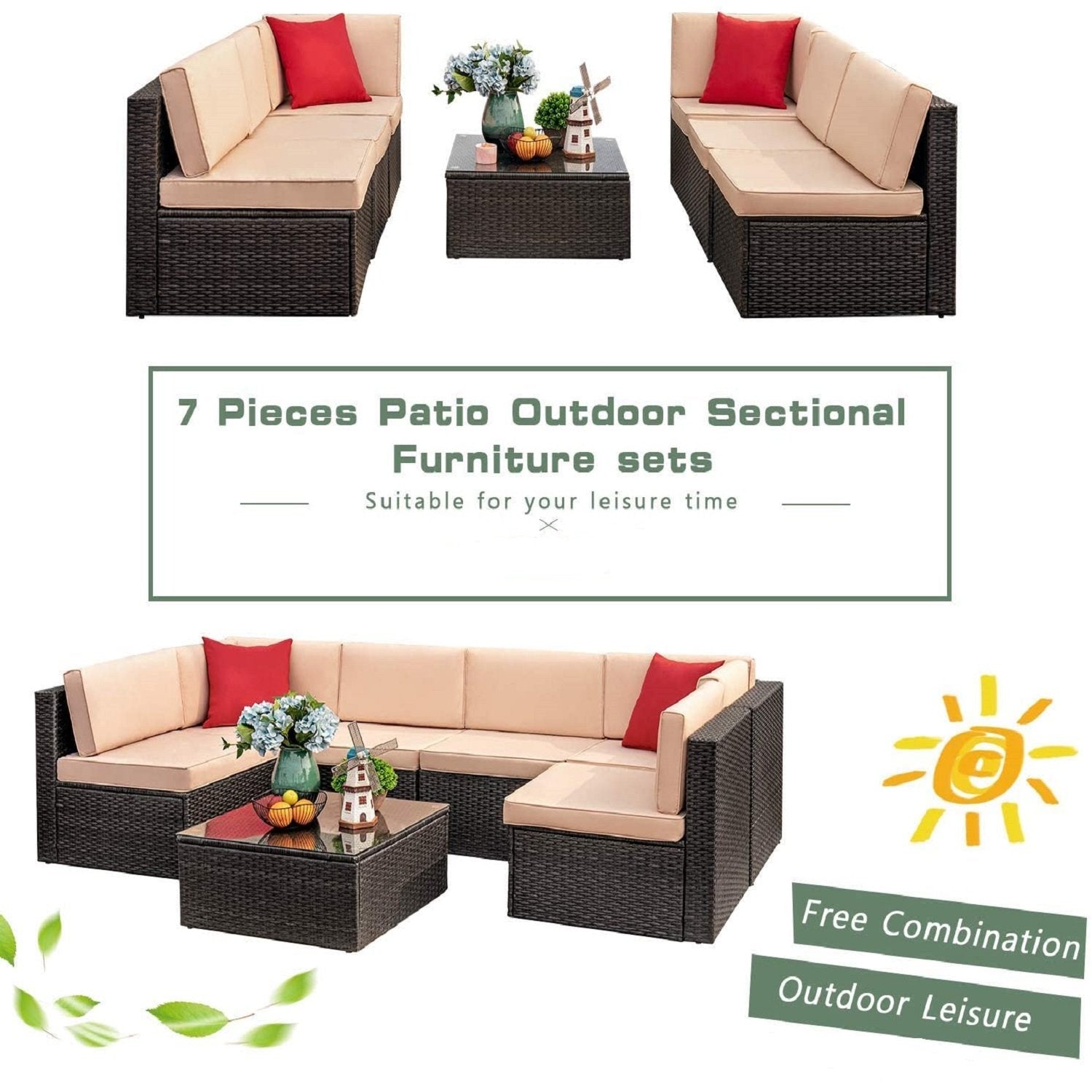 Homall Patio Furniture Set 7 Pcs Outdoor Furniture with Two Sofas