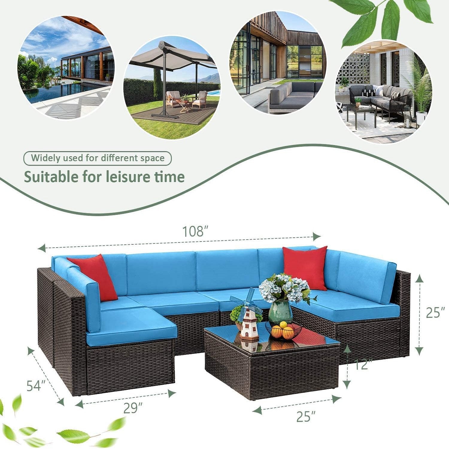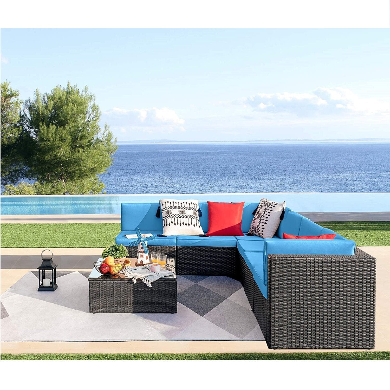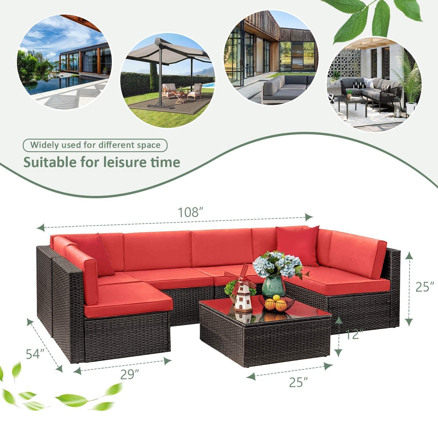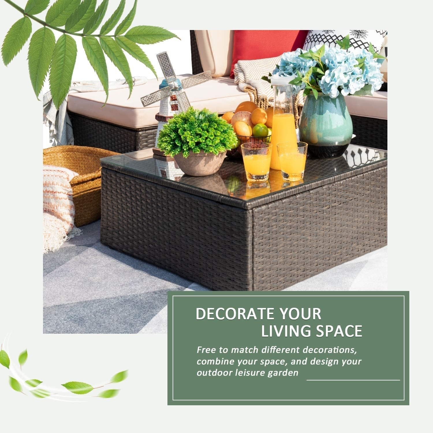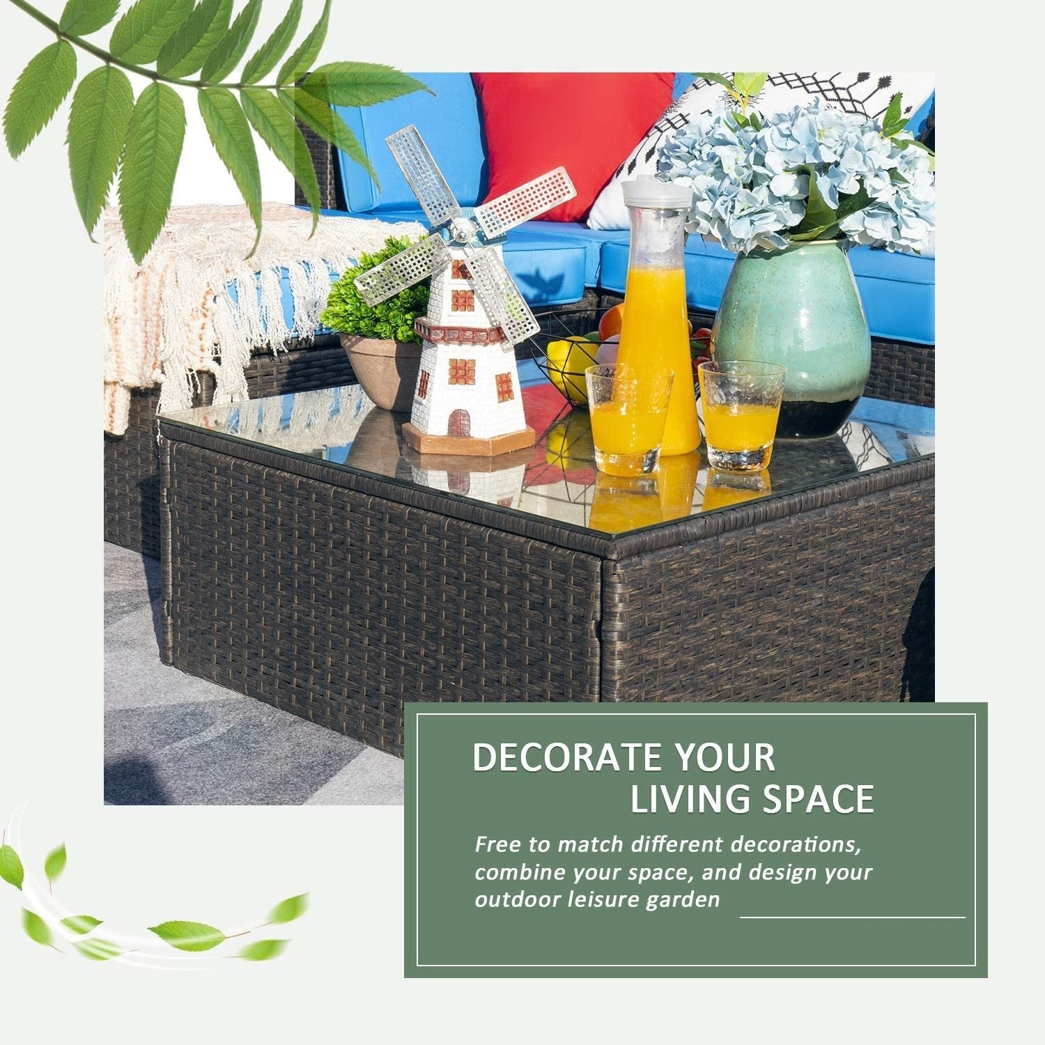 • - Sturdy & Durable: This outdoor sectional sofa sets with solid frame, high quality PE wicker are strong enough to withstand all weather variations. Thickened water resistant durable cushions and tempered glass are easy to clean.