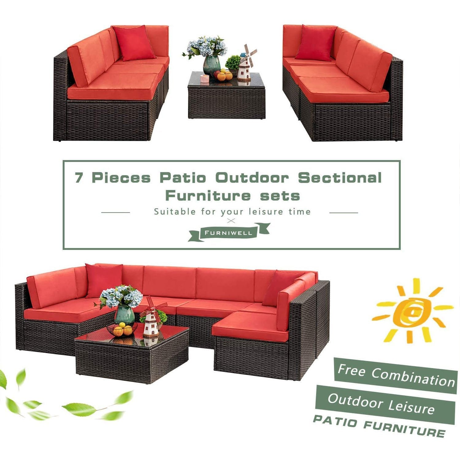 • - Sectional & Suitable: Patio furniture Sectional sofa sets freely rearranged into different combination for different occasion, Widely used for outdoor patio, porch, backyard, balcony, poolside, garden and other suitable space in your home.