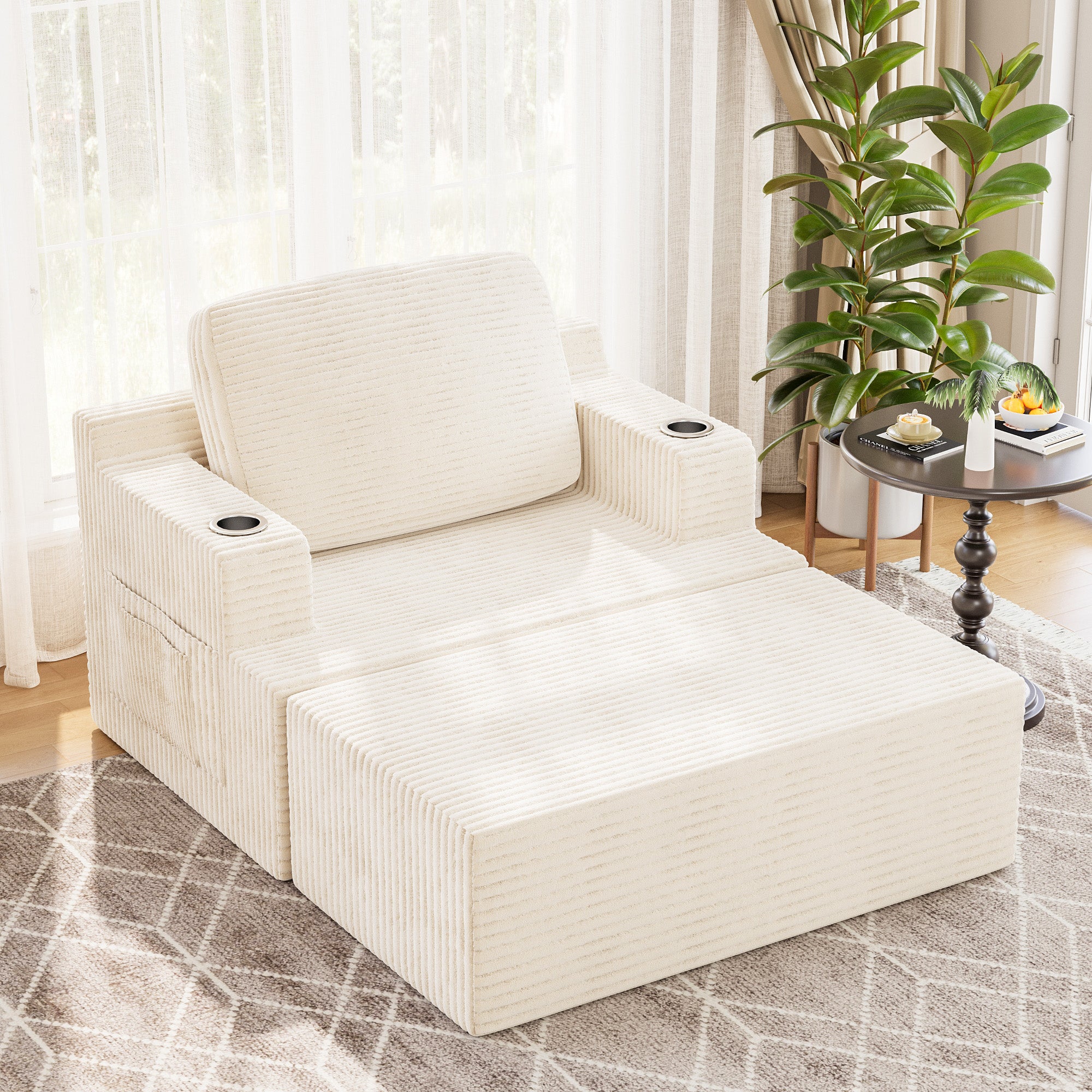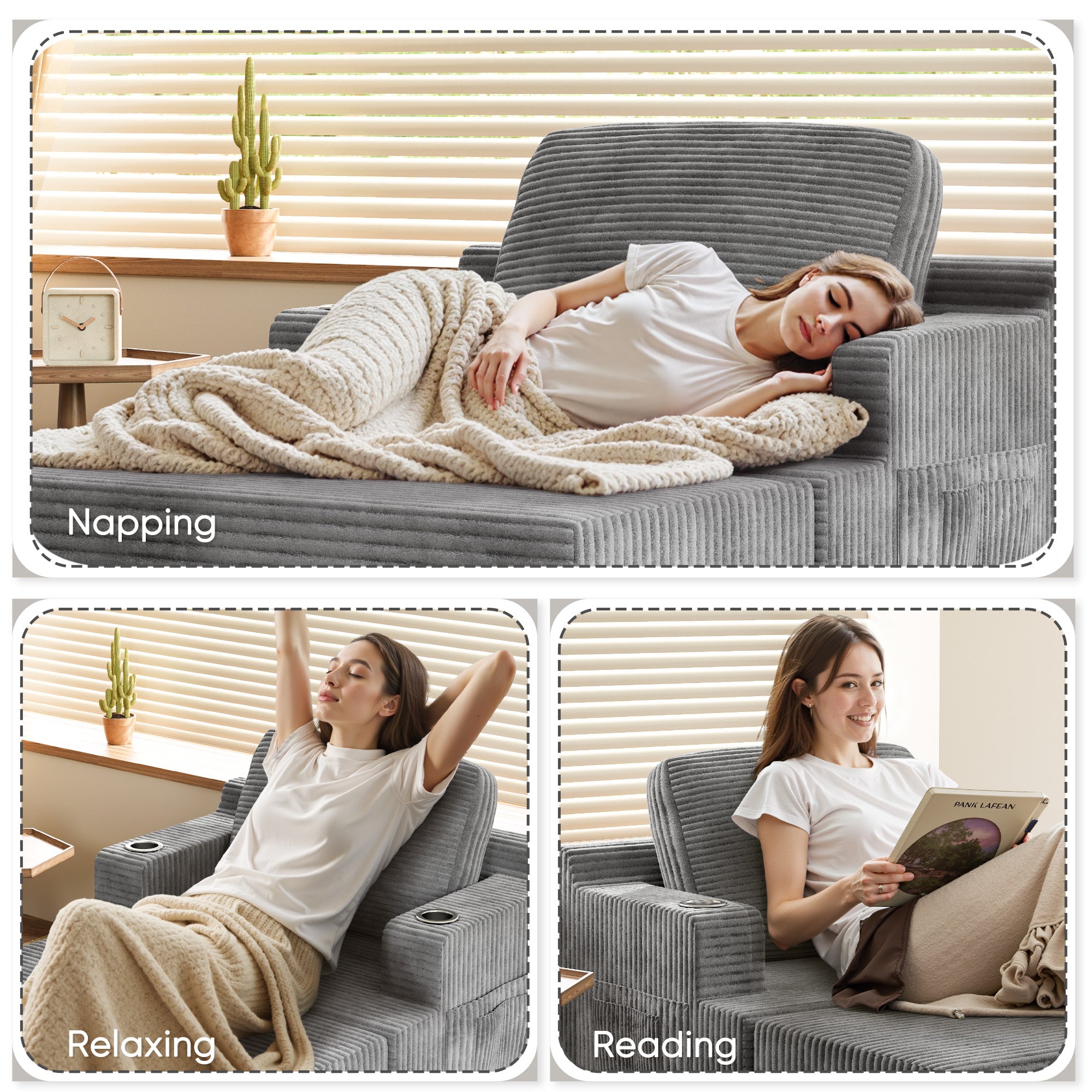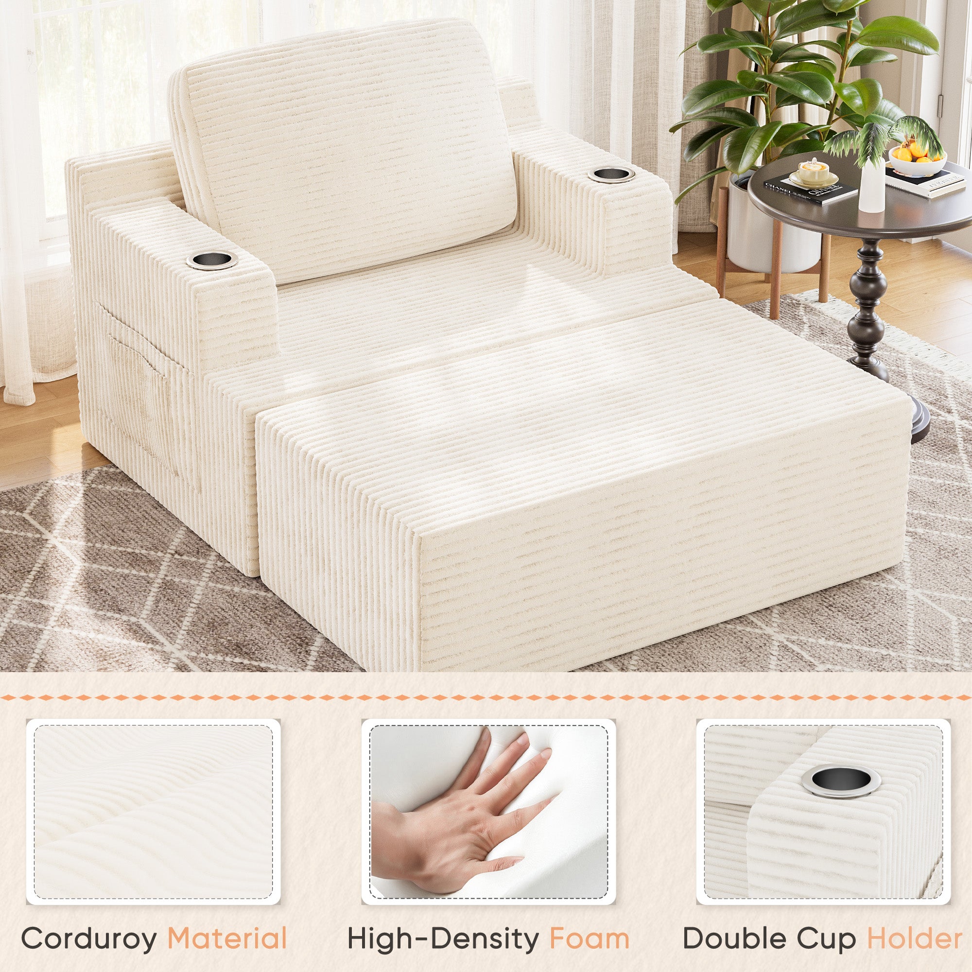 - 🌙【Built-in Cup Holders & Storage Pocket】Each armrest is equipped with dual cup holders to keep drinks, phones, or remotes close at hand. Side storage pockets offer ample space for books, tablets, and other essentials, helping you stay organized and adding practical convenience to your living area.