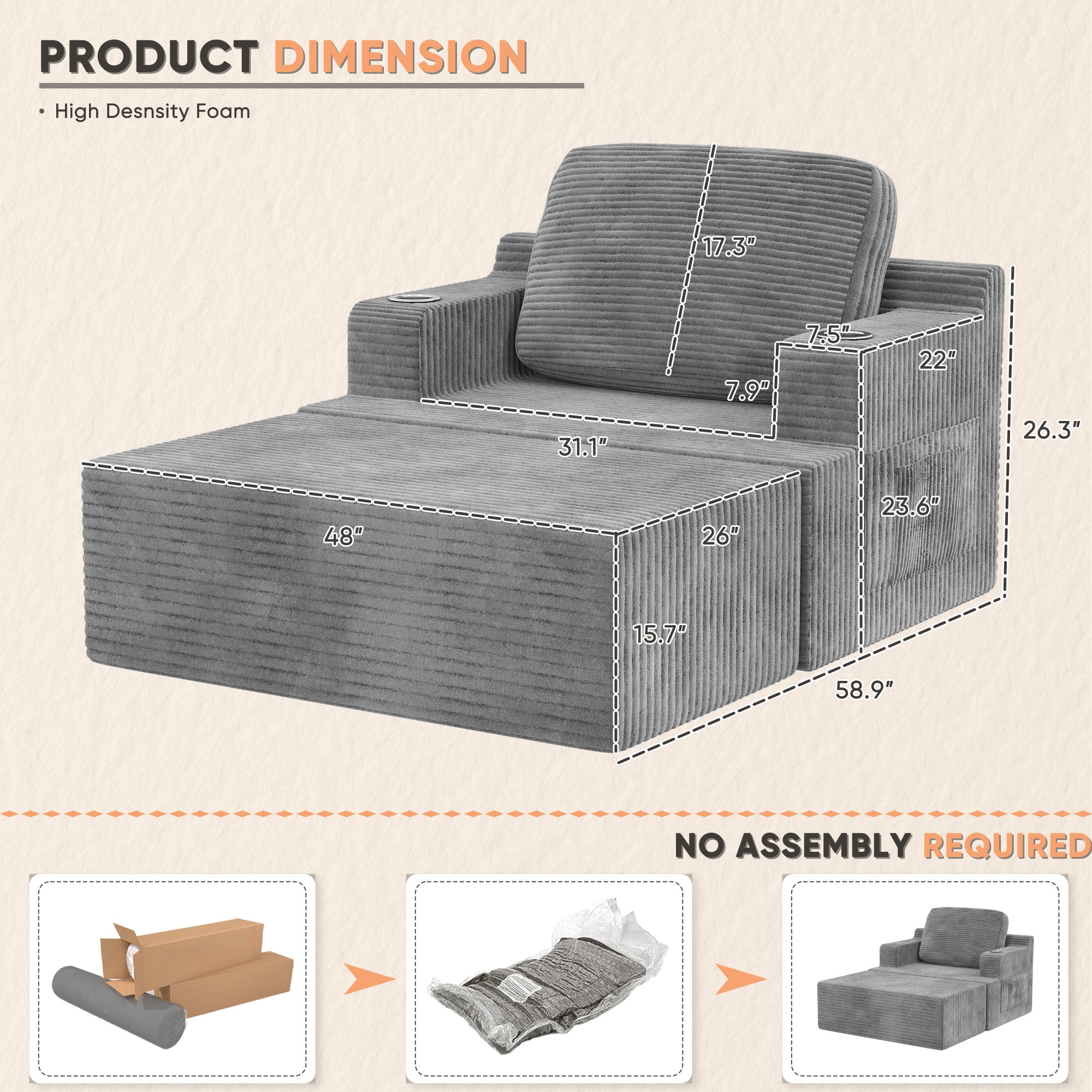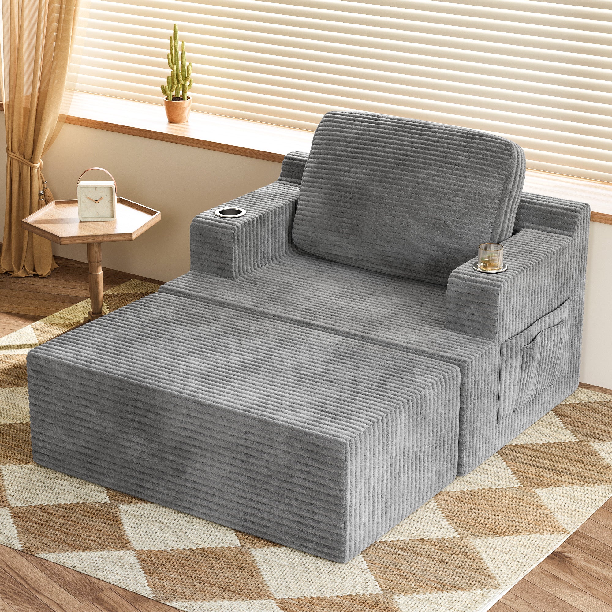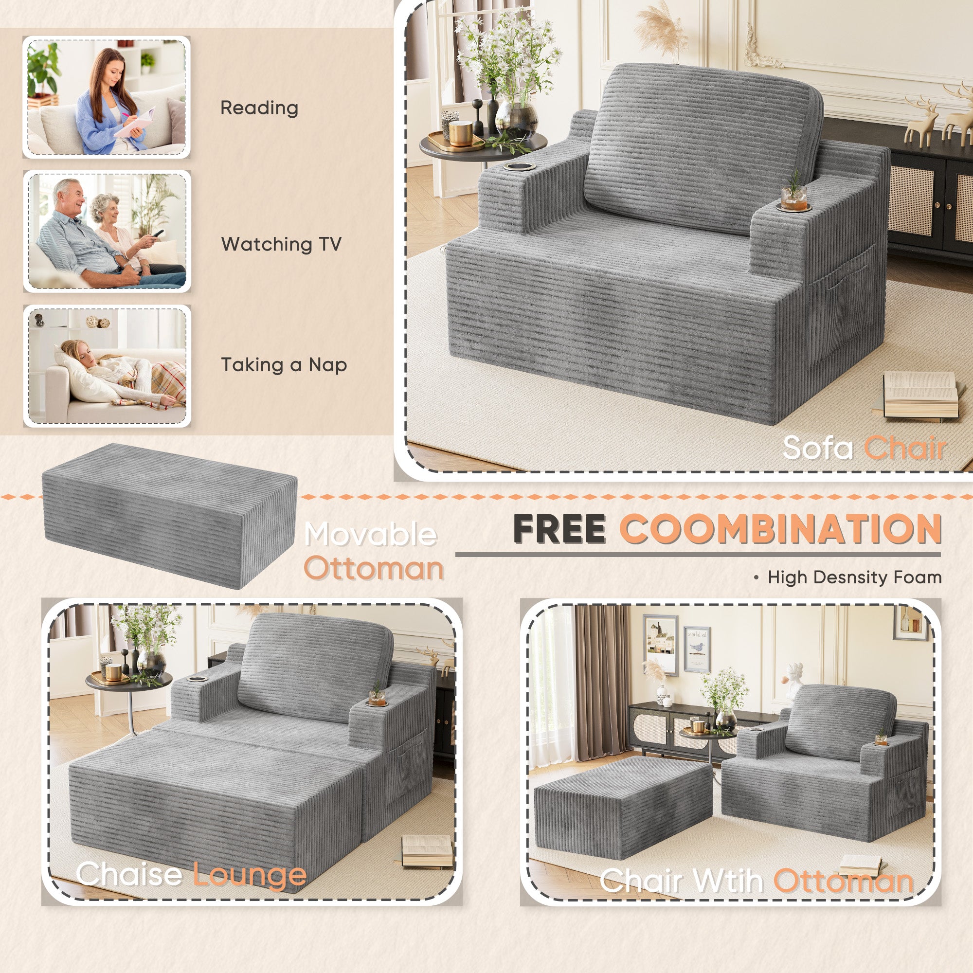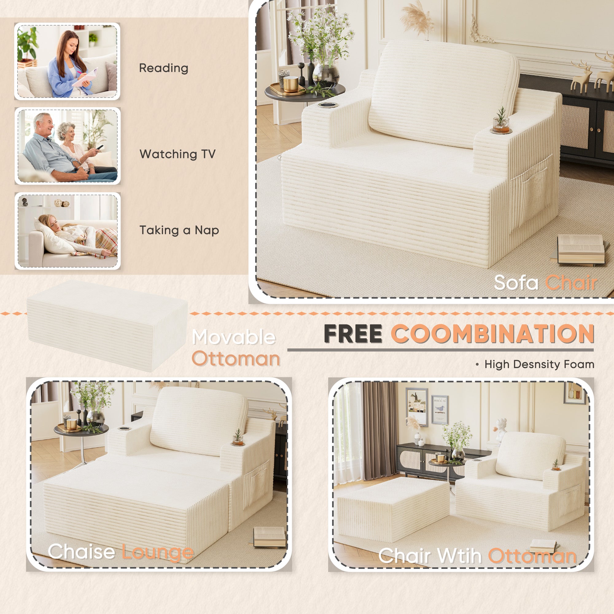 - 🌙【Built-in Cup Holders & Storage Pocket】Each armrest is equipped with dual cup holders to keep drinks, phones, or remotes close at hand. Side storage pockets offer ample space for books, tablets, and other essentials, helping you stay organized and adding practical convenience to your living area.