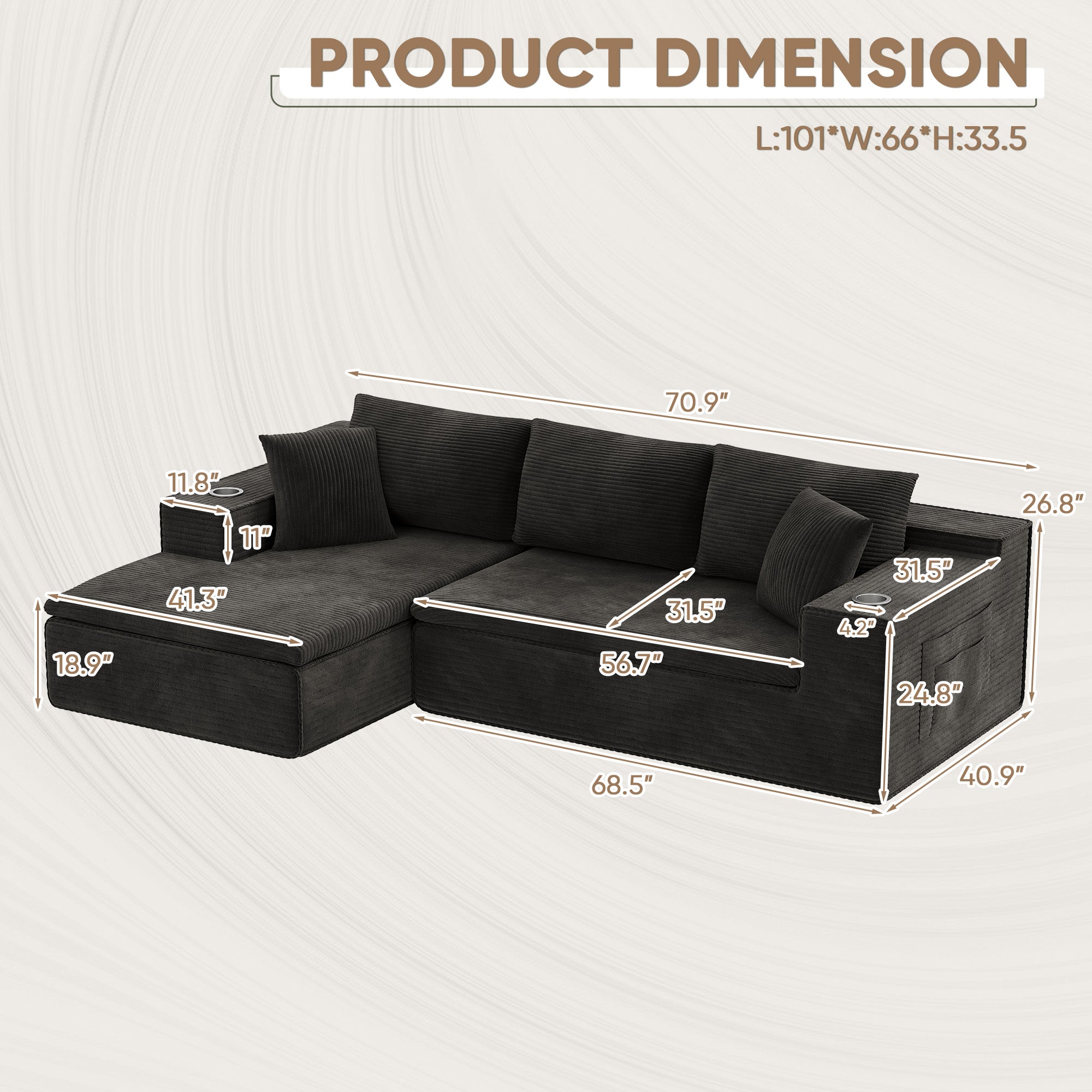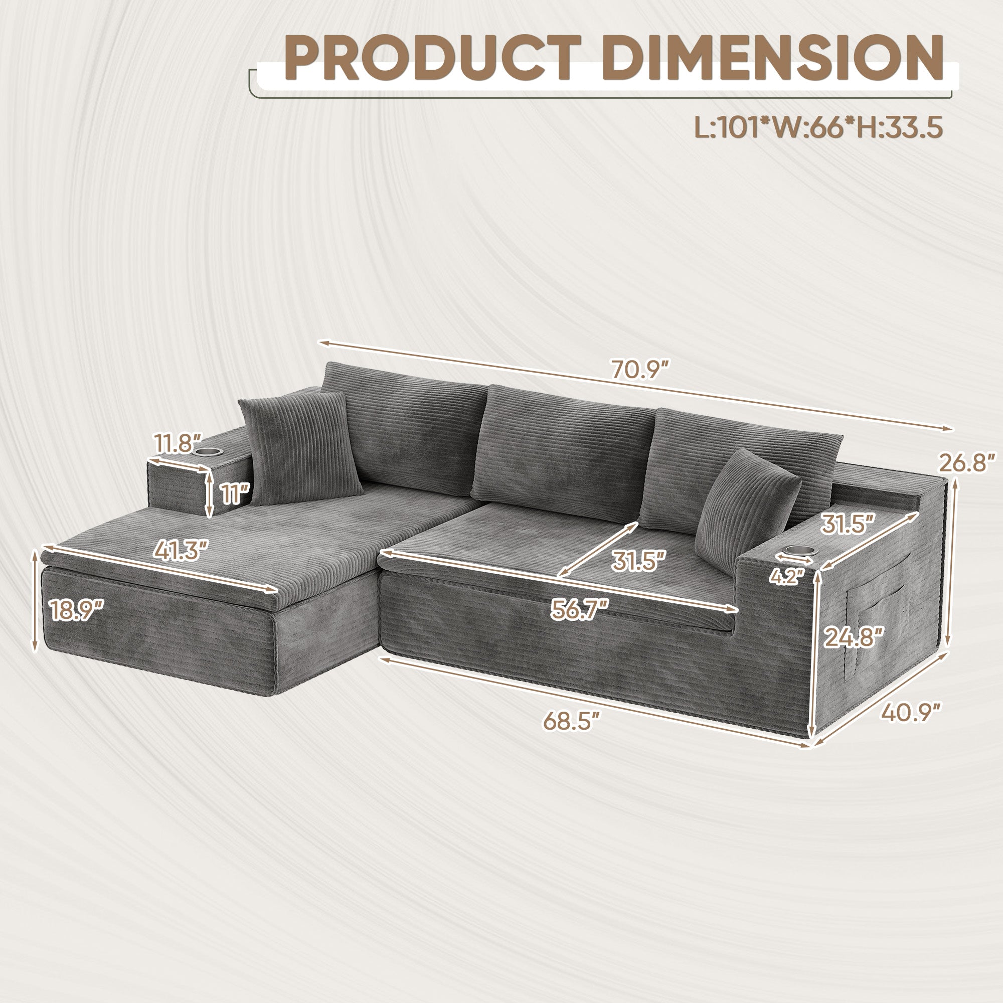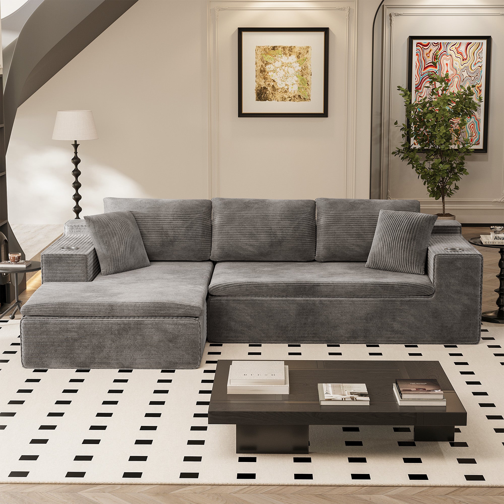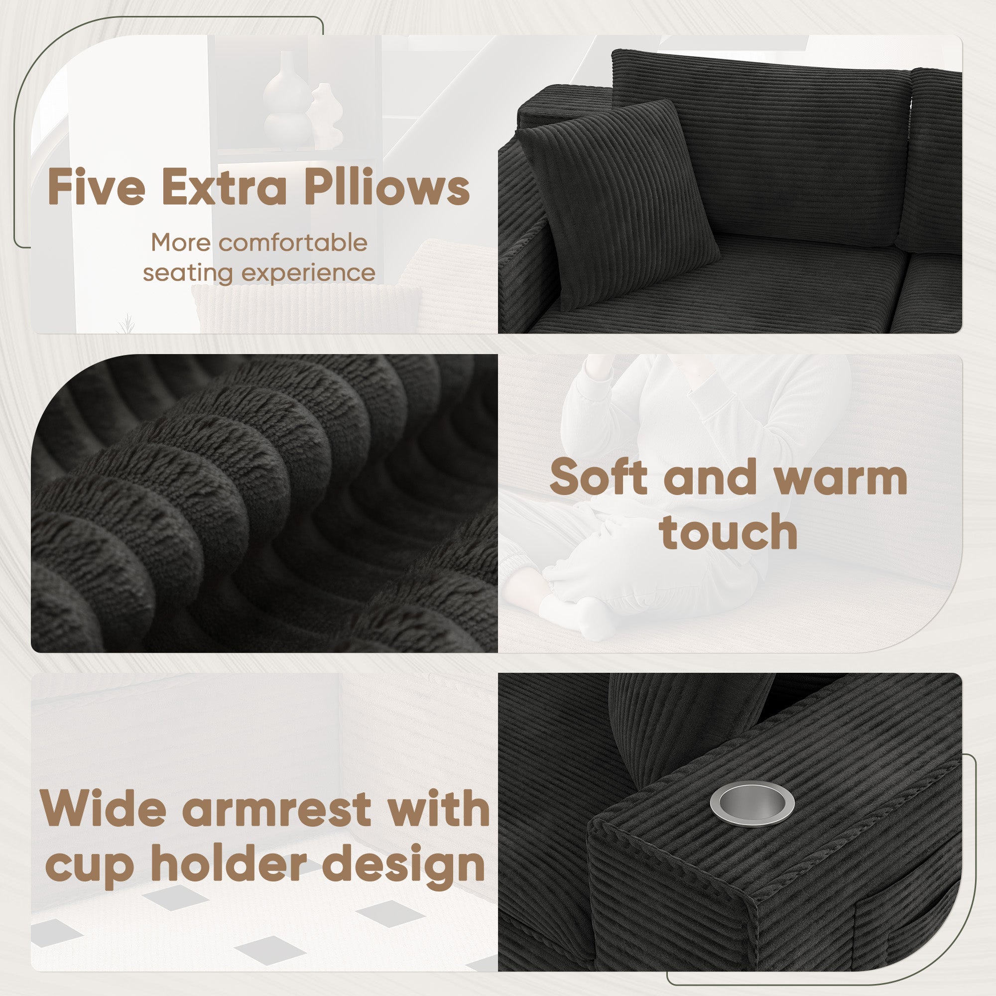 • 🛒【Comfortable Sectional Couch】Crafted with breathable fabric and high-resilience memory foam, it delivers a cloud-like seating experience. The upgraded wrinkle-resistant corduroy fabric offers exceptional softness, adding warmth and sophistication to any room, with high-quality materials ensuring lasting comfort throughout the seasons.