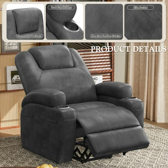 - 🛒【User-Friendly Design】Includes a comfortable headrest for neck support, dual cup holders on both armrests, and side pockets for storing books and small items—making it both functional and convenient.