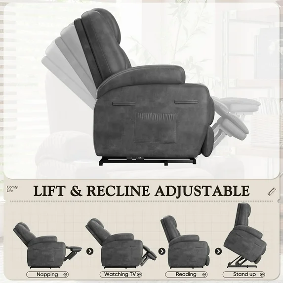 🛒【Adjustable Lift & Recline】Easily control the recliner via remote to adjust angles from 45° to 160°, offering strong support when standing up. The extendable leg rest allows ultimate relaxation whether sitting upright, elevating your feet, or lying flat. 🛒【Multi-Point Massage Function】Equipped with 8 massage points featuring timer and intensity settings....