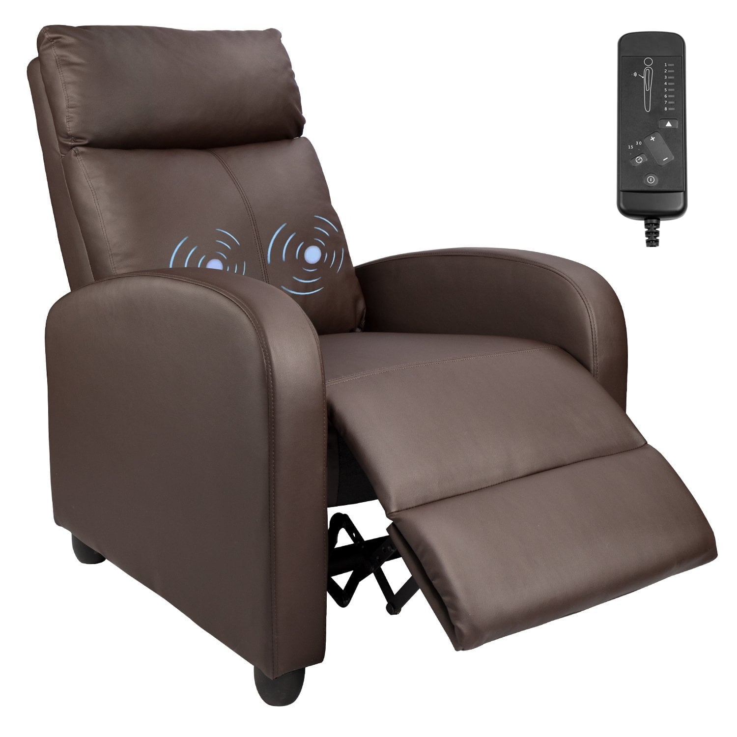 Product details Homall Massage Recliner PU Leather Faux Leather Recliner Home Theater Recliner with Padded Seat and Massage Backrest, Black Features:  Material: High-quality PU leather (comfortable skin friendly and easily cleaned), high-density thicker sponge ( high resilience and high permeability). Exquisite Stitching Design: Perfect dual stitching design offer a elegant...