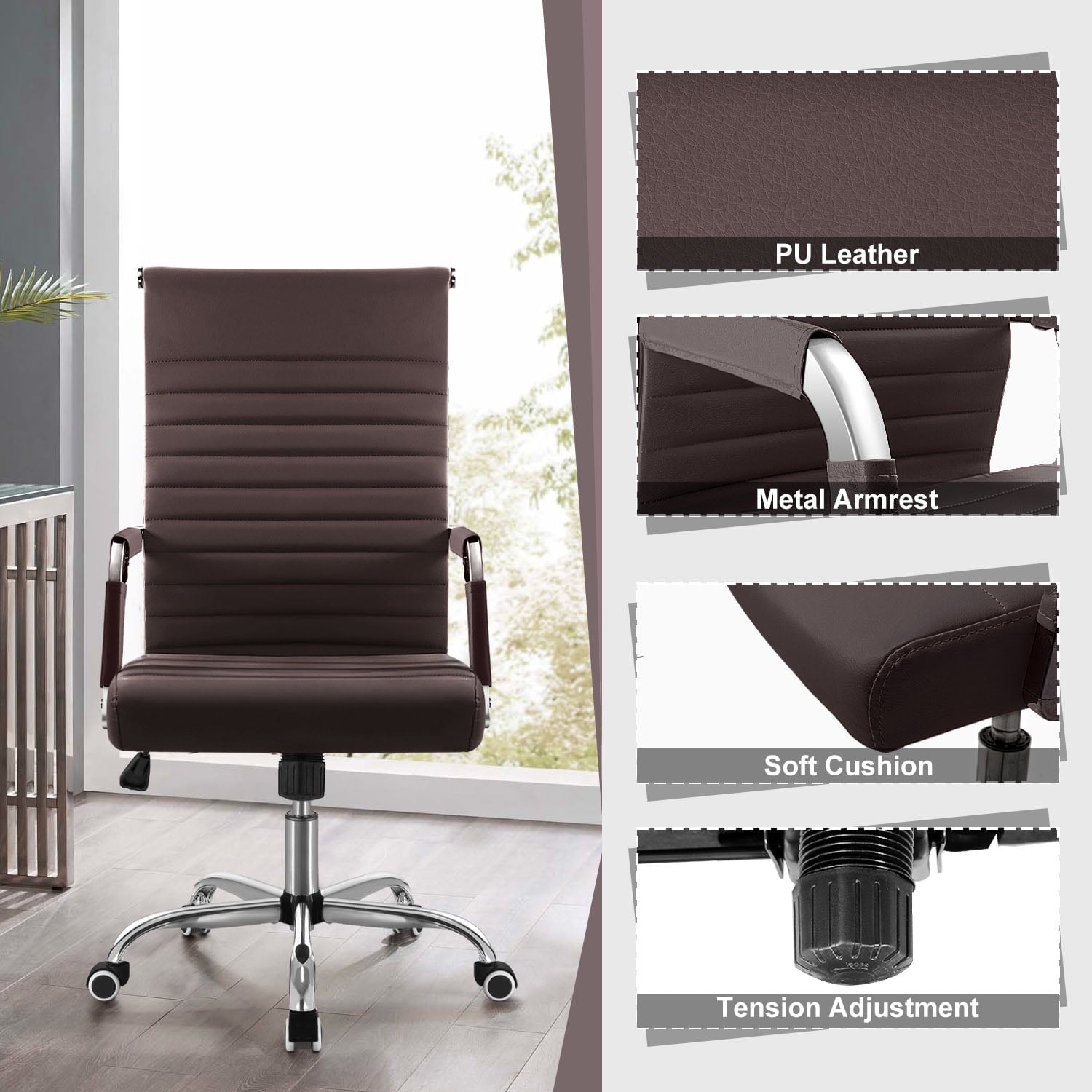 Product details Homall Mid-Back Faux Leather Office Desk Chair Executive Conference Task Chair with Arms, White If you are looking for an office chair, this conference chair is a very good choice. Mid-Back Ergonomic Office Chair with high level material can enhance your sitting experience. The ergonomic design of the chair...