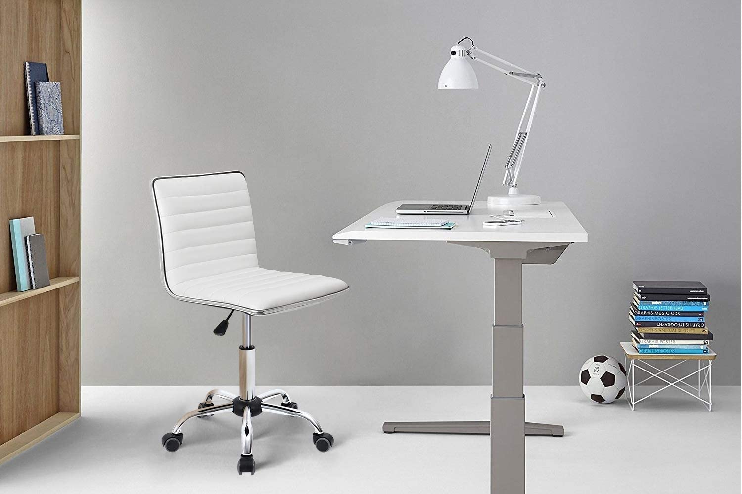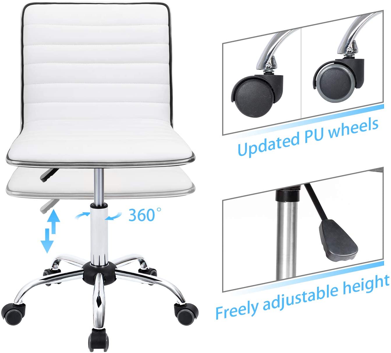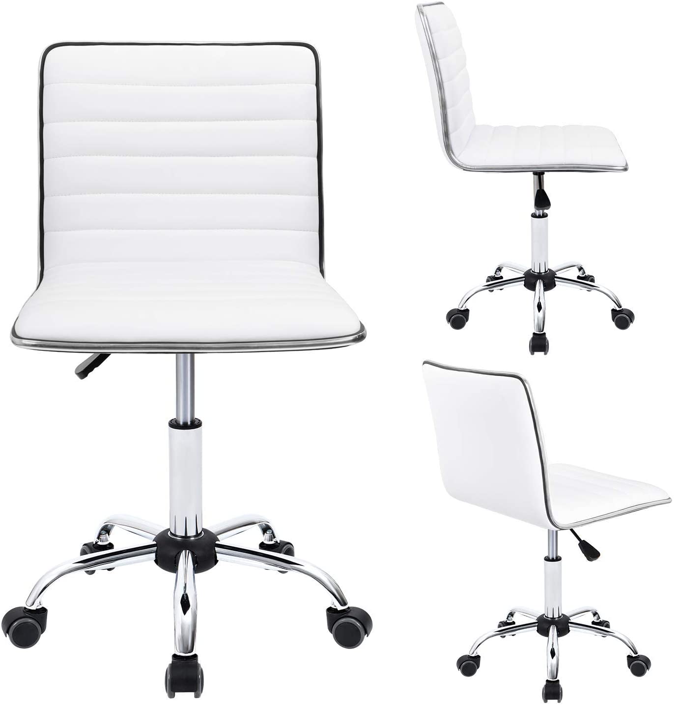 Homall Mid Back Task Chair,Low Back Leather Swivel Office Chair,Computer Desk Chair Retro with Armless Ribbed (White)