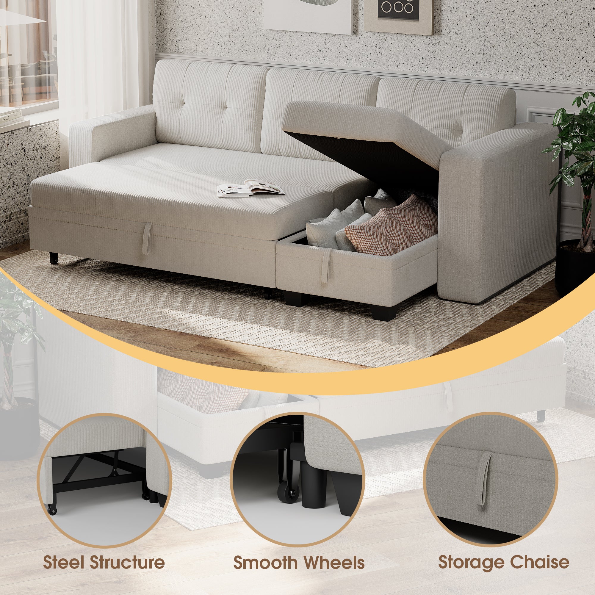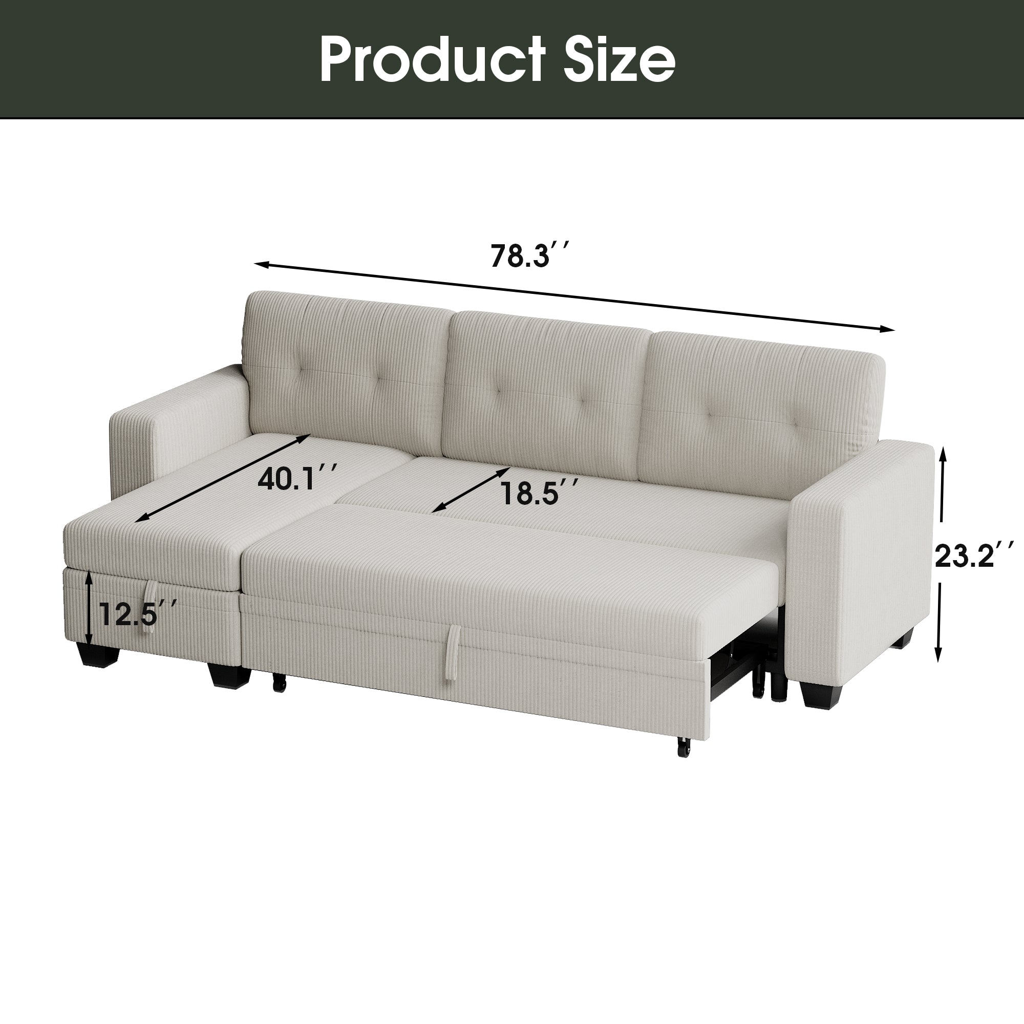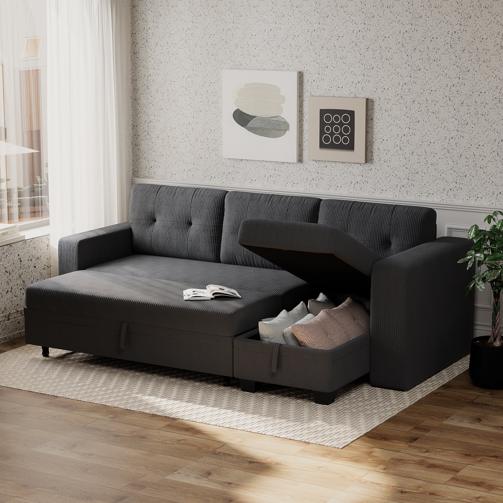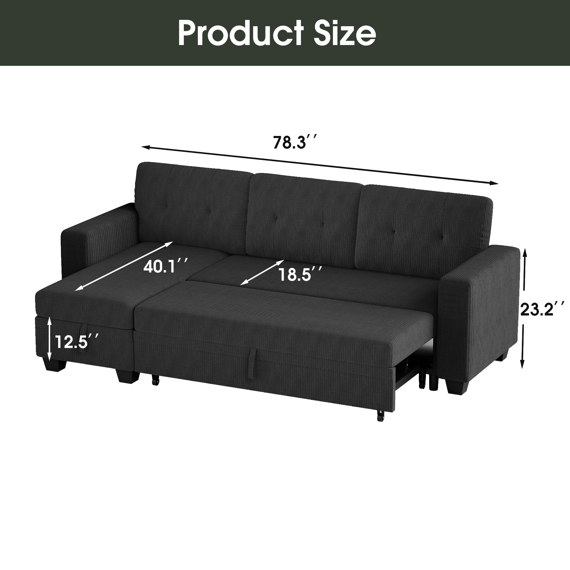 Homall Multi-Person Sofa Bed with Storage Space, Stretchable into Bed, 3 Seat Corduroy Sofa Bed