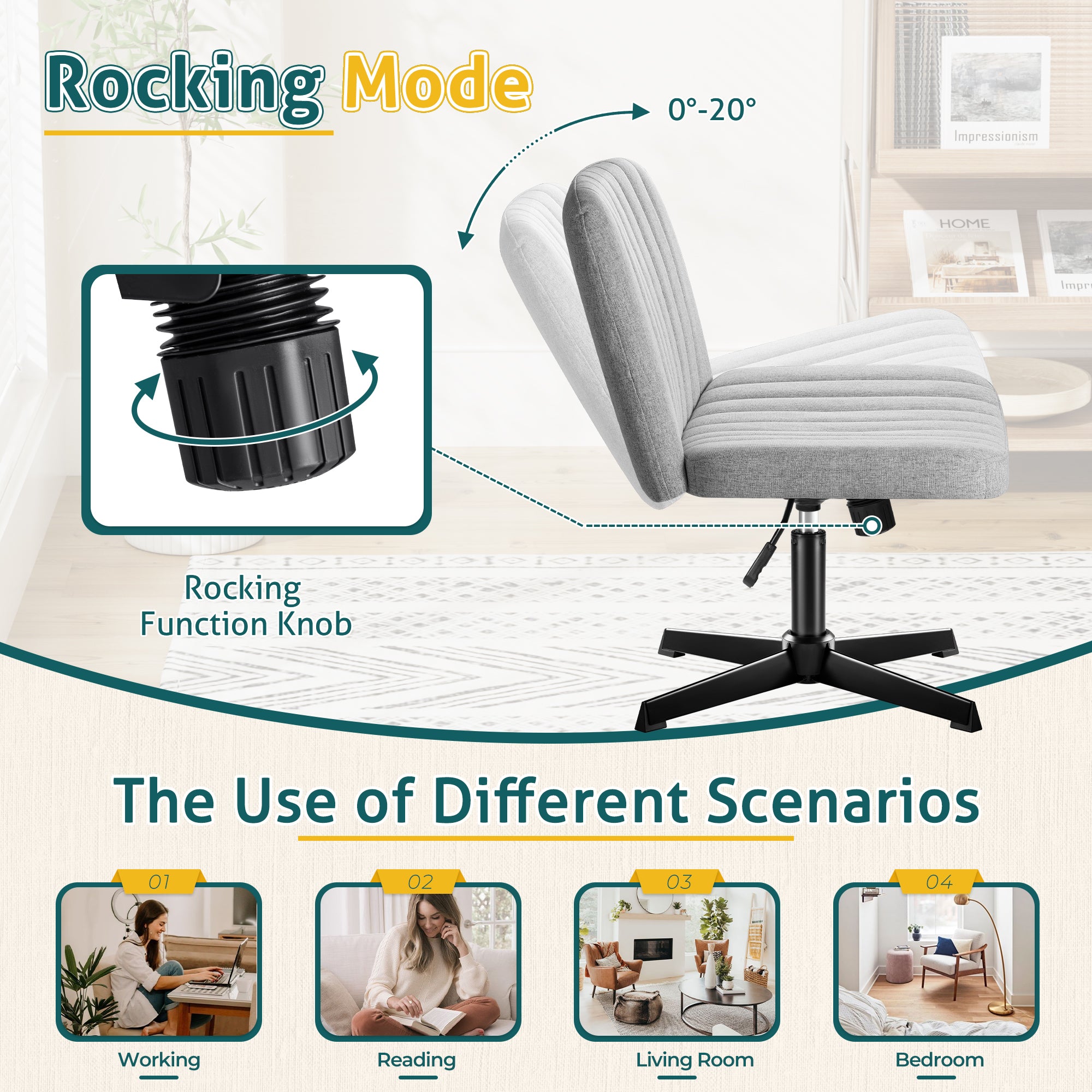 Product details Homall Office Desk Chair Armless Swivel Vanity Chair, Fabric Padded Home Office Chair No Wheels Key Features: Spacious and Comfortable: This office chair is designed with a wide seat, providing ample room for users to sit comfortably. The generous seating area allows for unrestricted movement and ensures a relaxed...