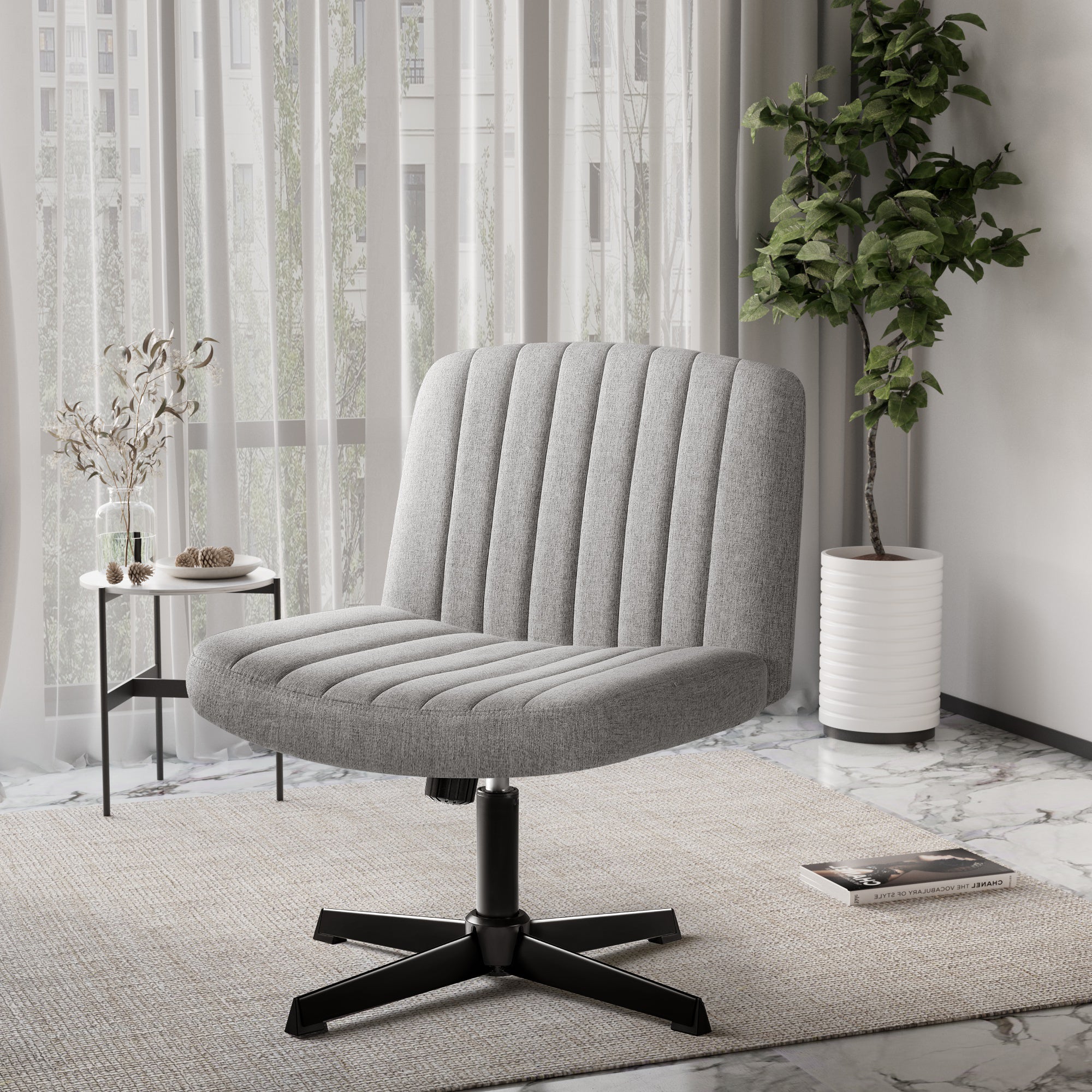 Homall Office Desk Chair Armless Swivel Vanity Chair, Fabric Padded Home Office Chair No Wheels, Gray