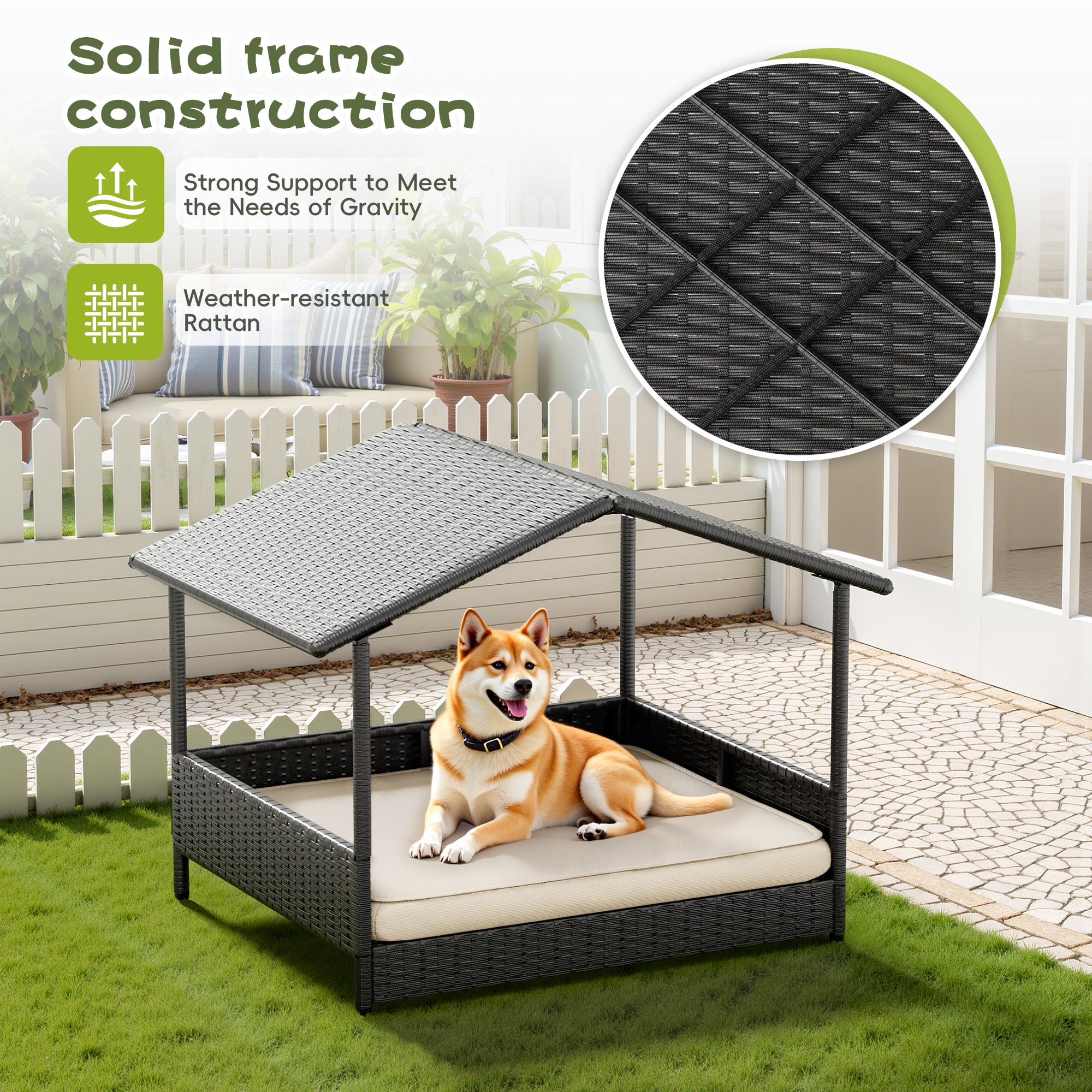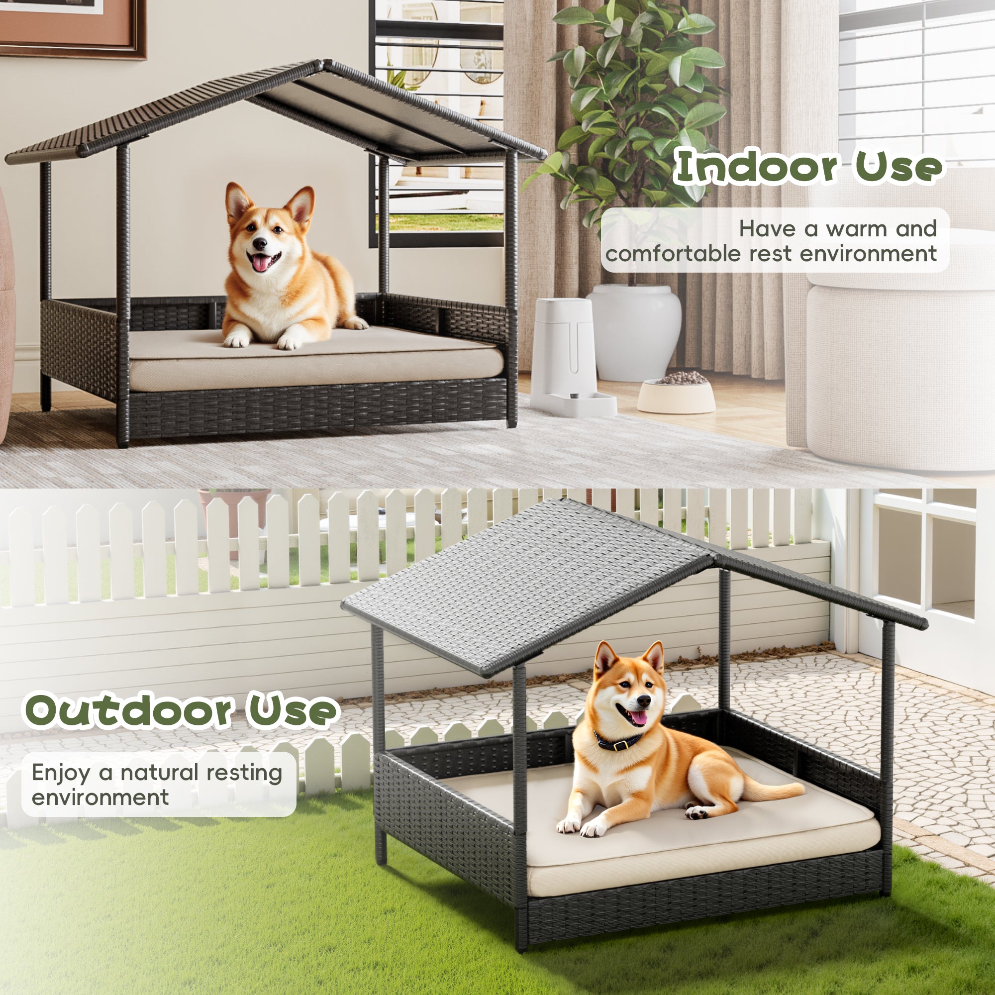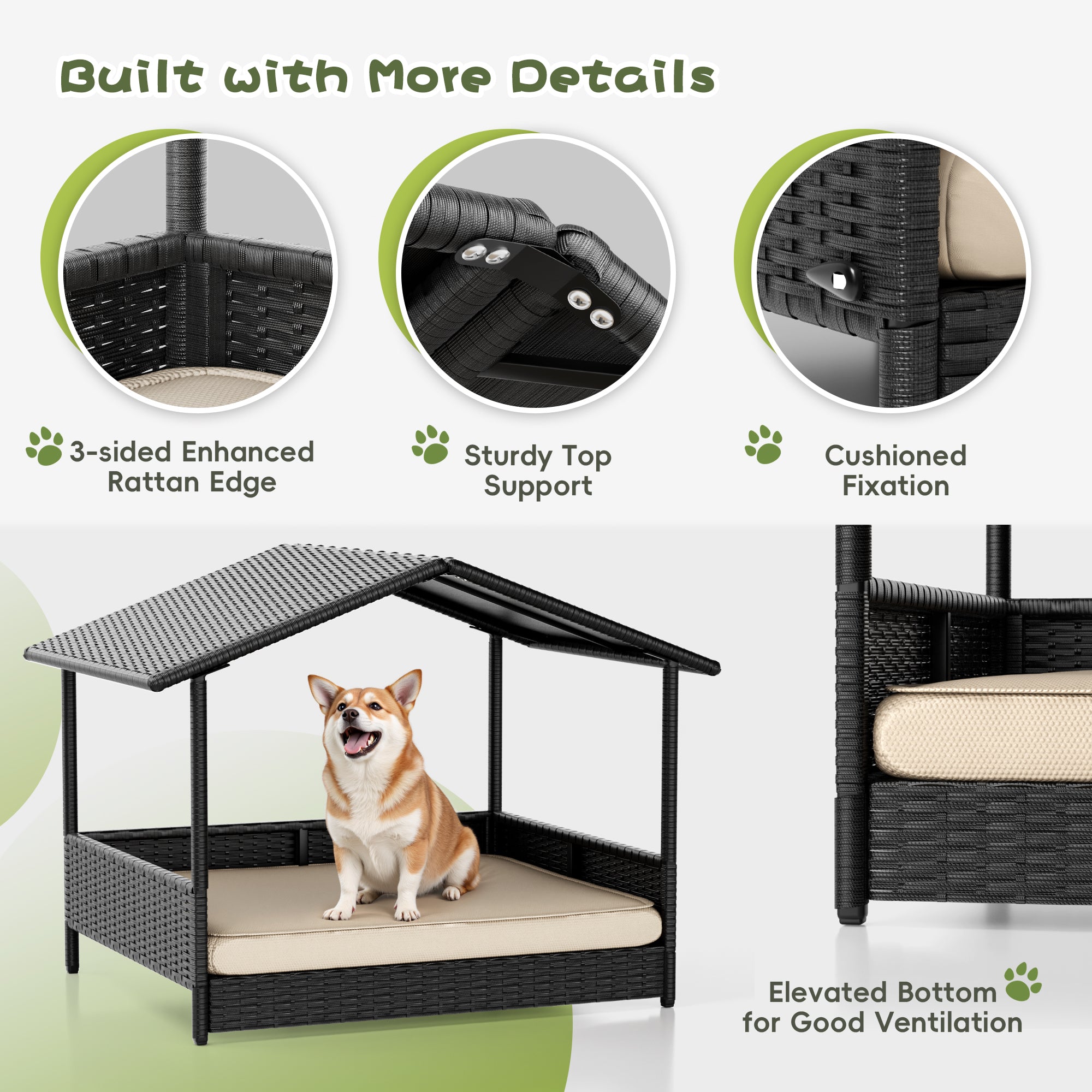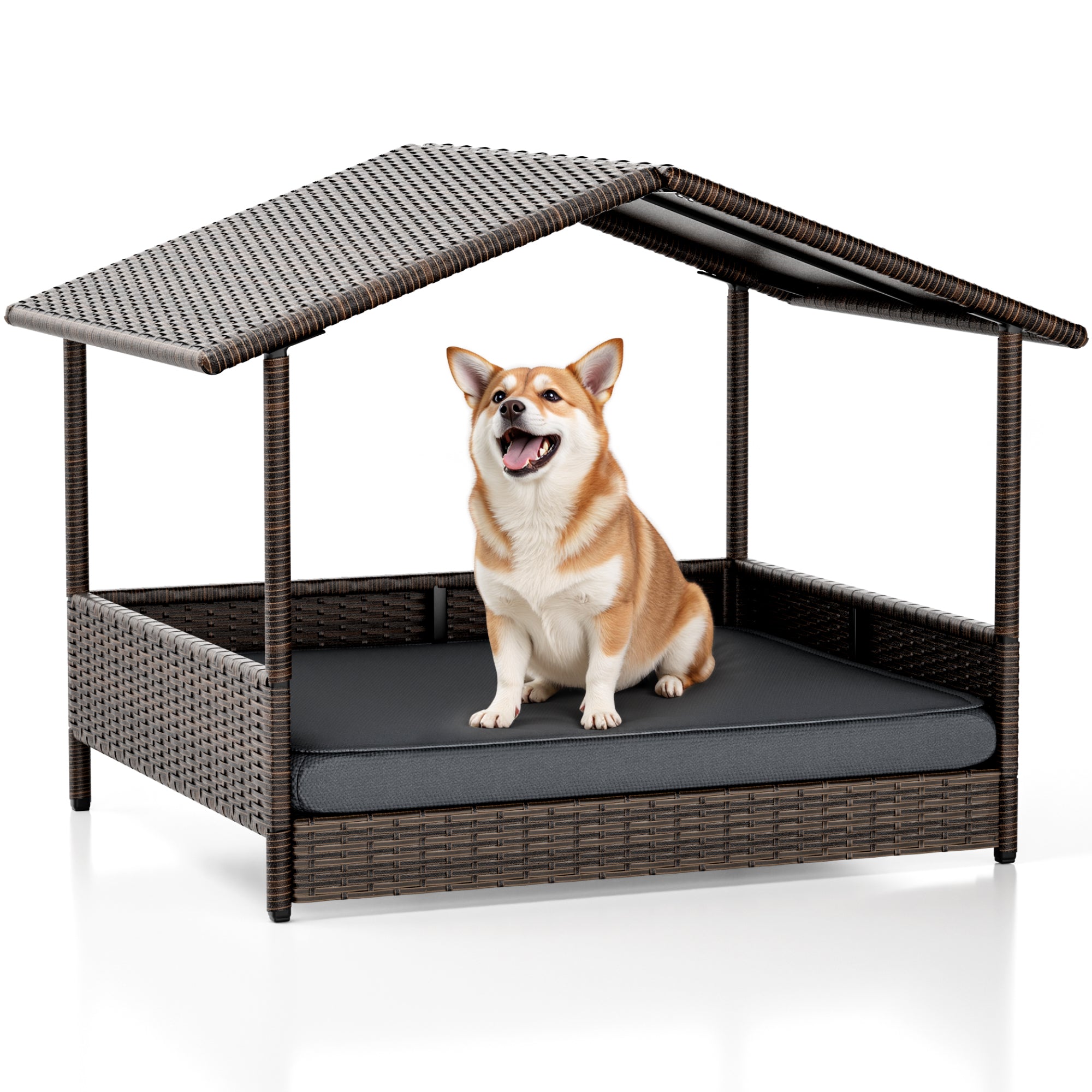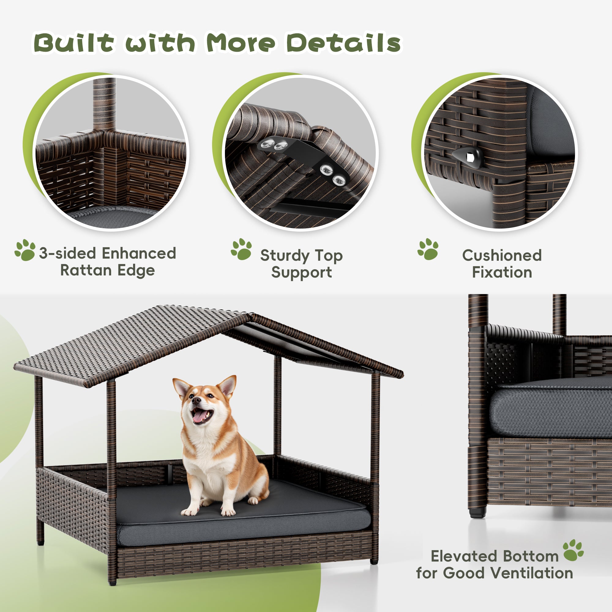 Homall Outdoor&Indoor Wicker Dog House with Removable Cushion Dog Shelter Dog Bed with Canopy Raised Dog Bed for Small/Medium Dogs