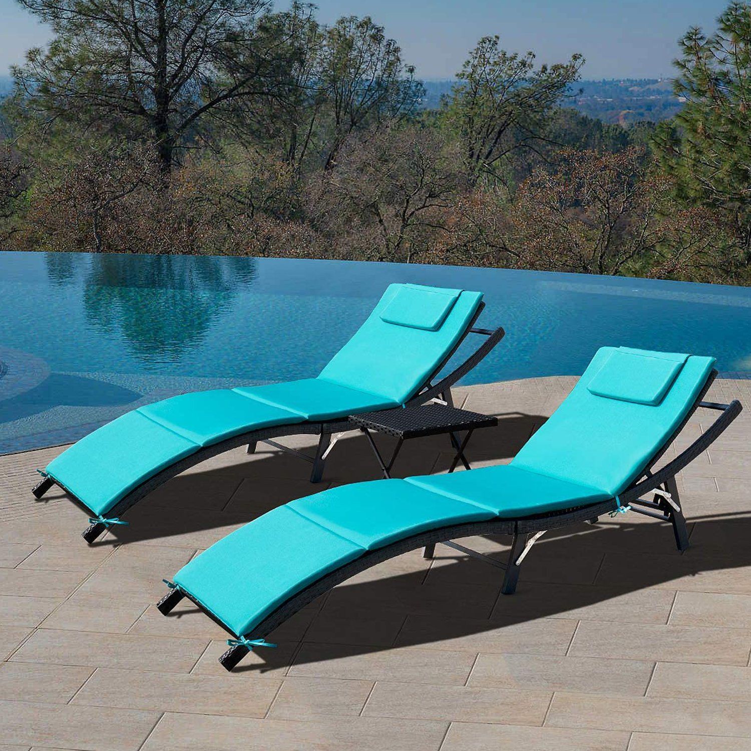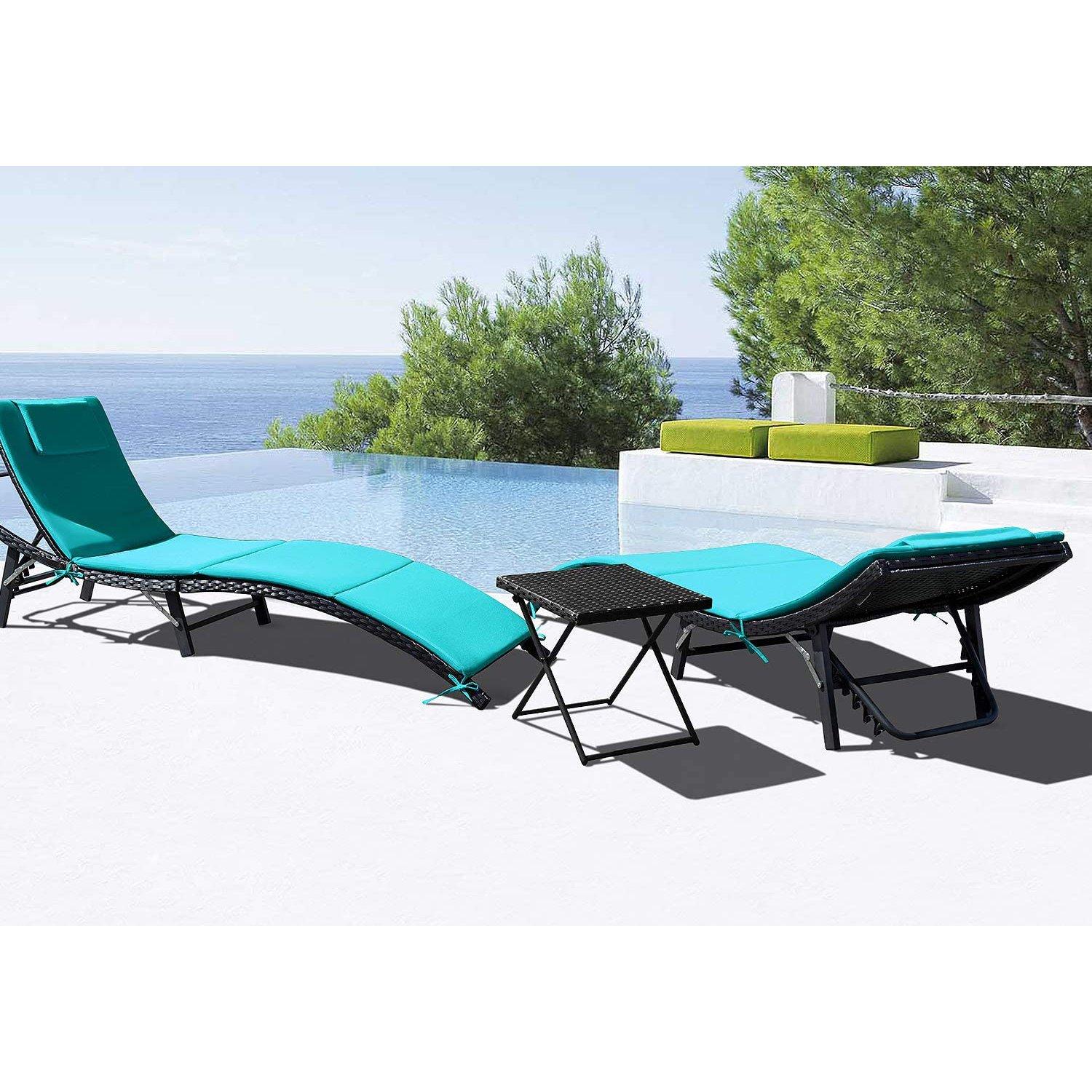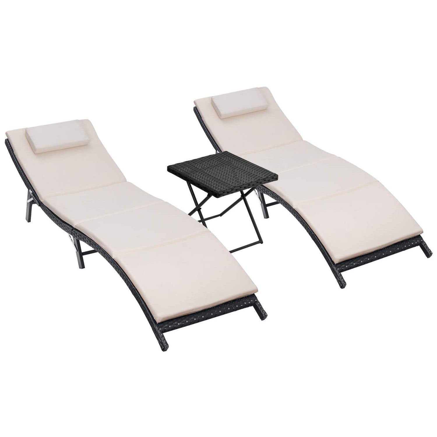 Homall Outdoor Lounge Chair Adjustable Patio Garden Poolside Furniture Set 3 Pieces