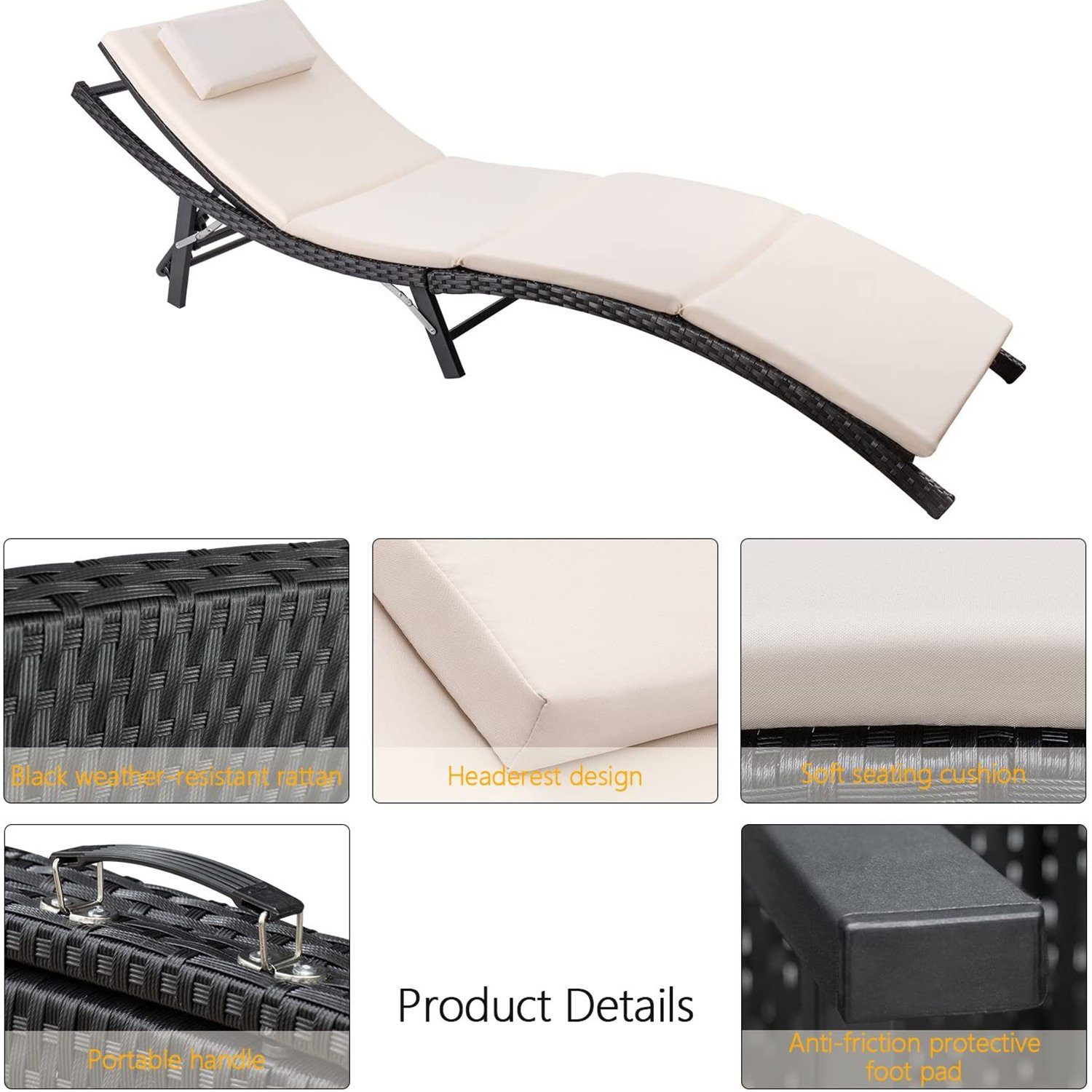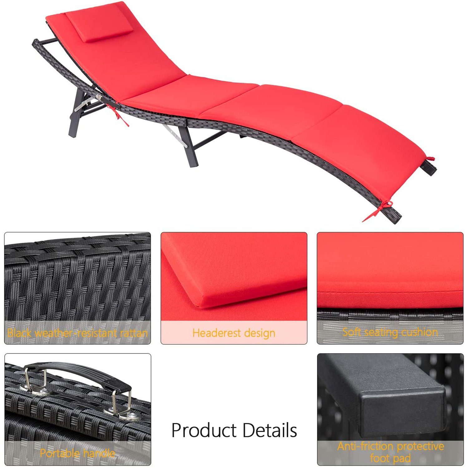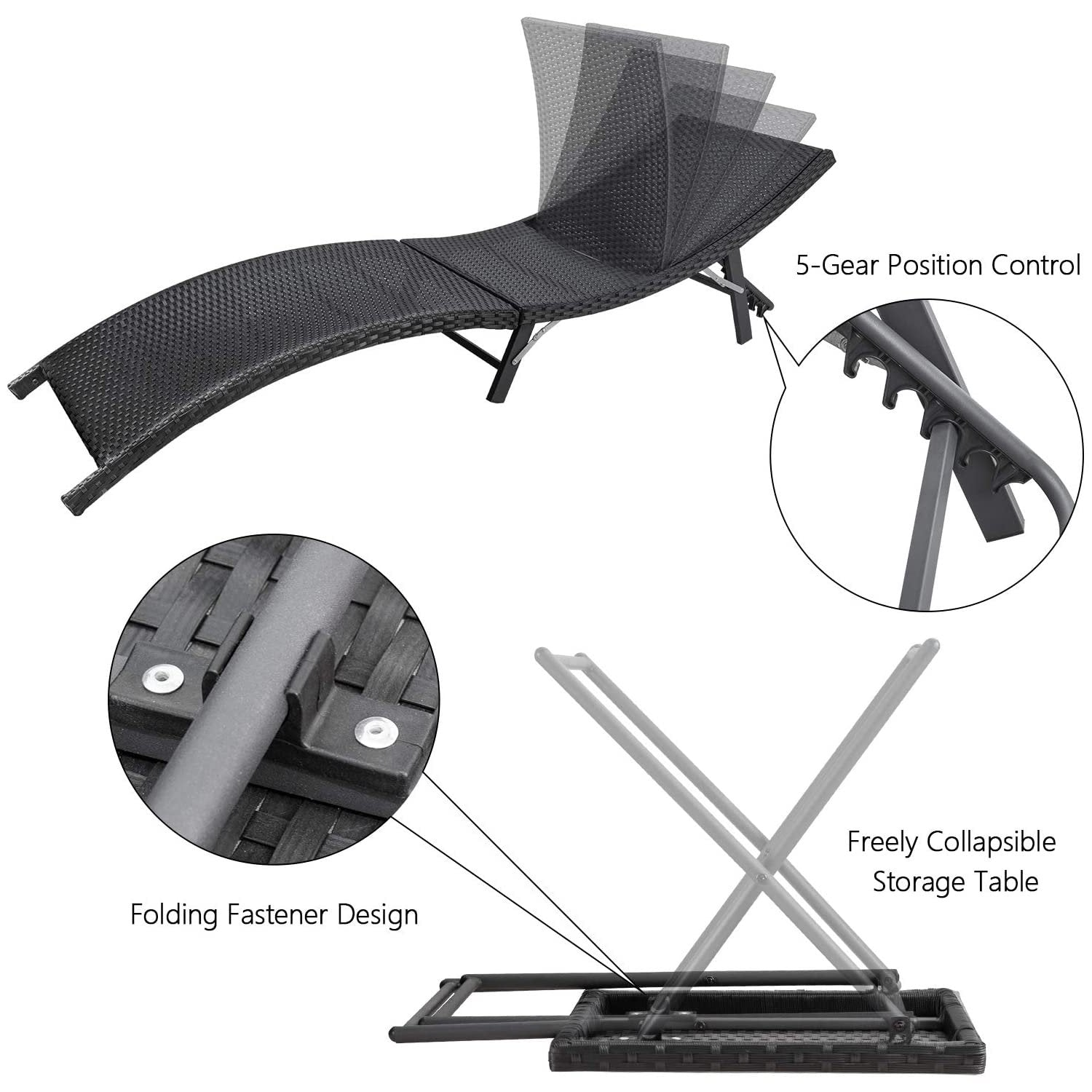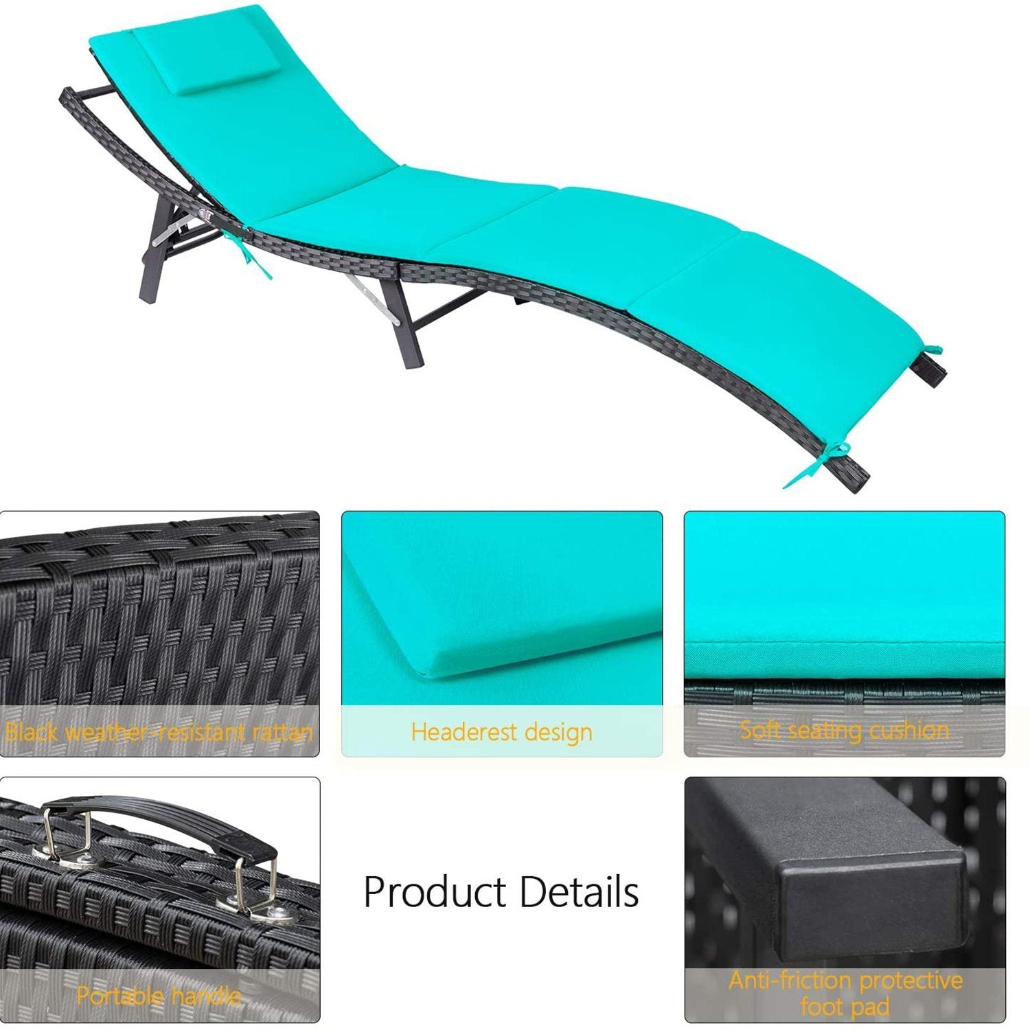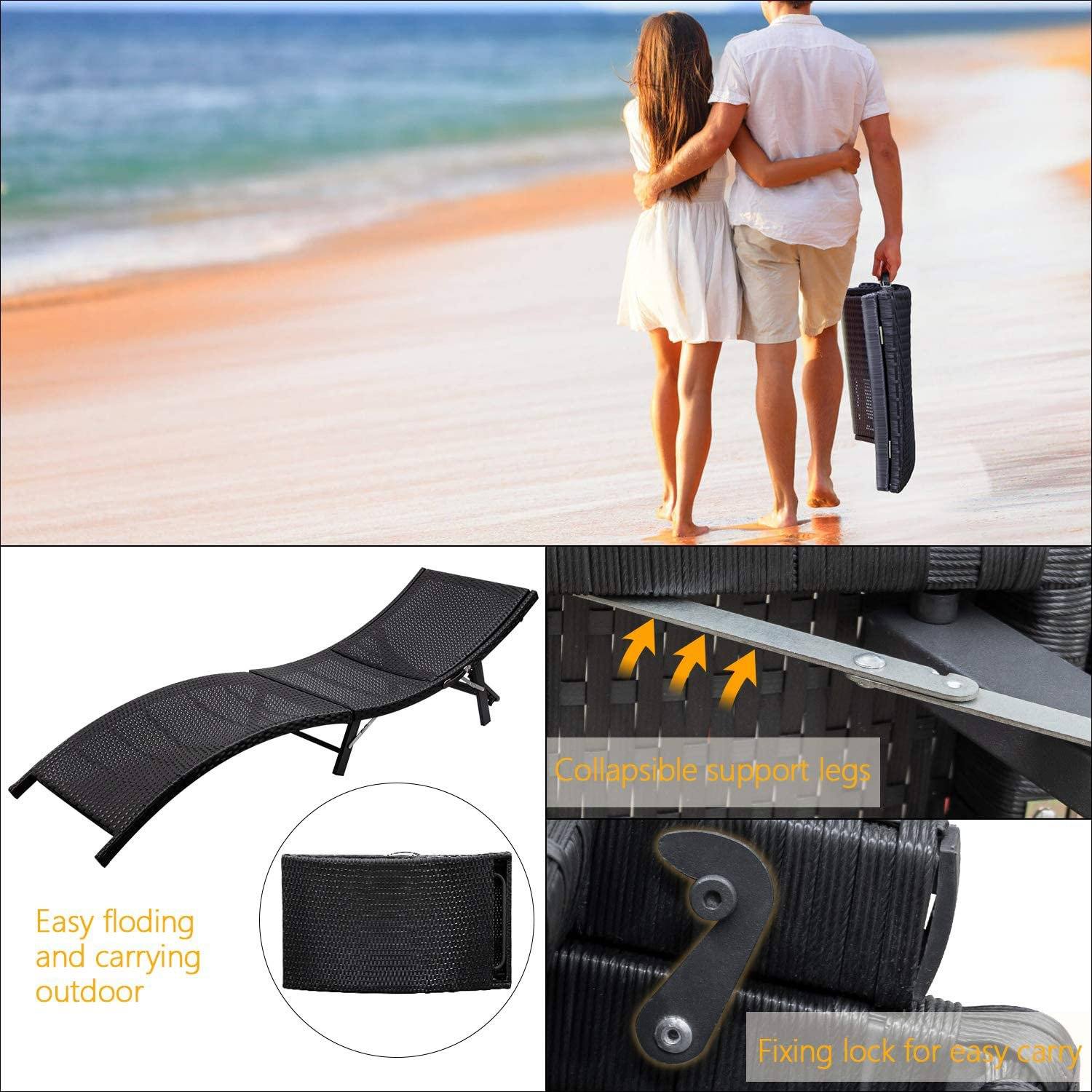 【All-Weather Resistant】 This patio lounge chairs is durable enough to withstand rain wind and exposure to the sun for year-round use. Made of all-weather resistant PE Rattan and rust-resistant steel frame,featuring sturdy construction and durable use. 【Folding Design】You can put this pool lounge chair in a corner with folding form...