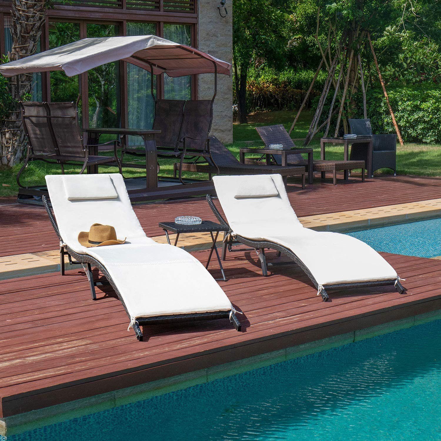 - 【Multifunctional Use】With side table you can have a drink or just reading a best seller in your yard. Perfect for pool, balcony, garden, sandy beach, outdoor recreation place and other suitable place. Give people a good sense of visual design.