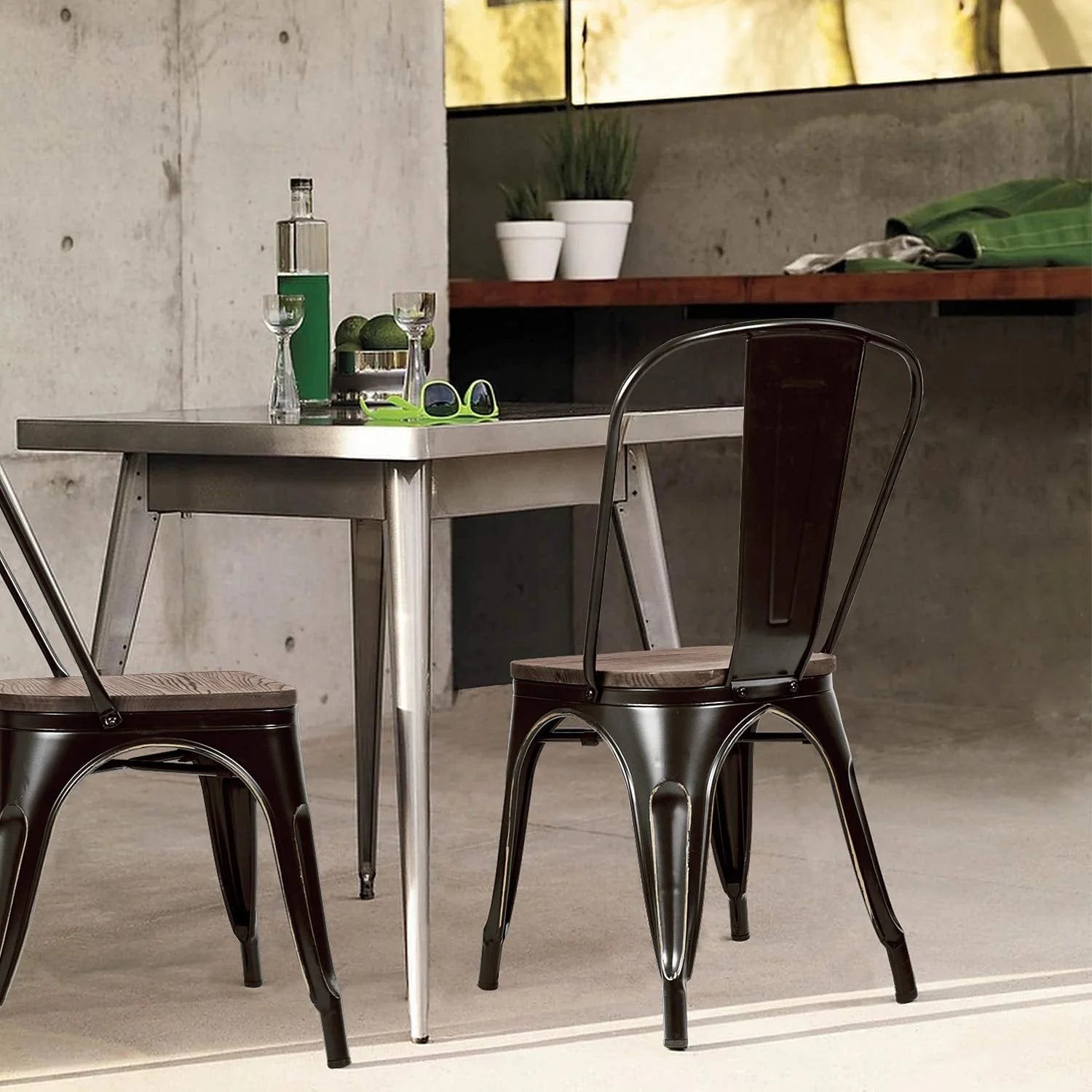 Lacoo Indoor-Outdoor Use Stackable Chic Dining Bistro Cafe Metal Chair, Set of 4, Black Gold