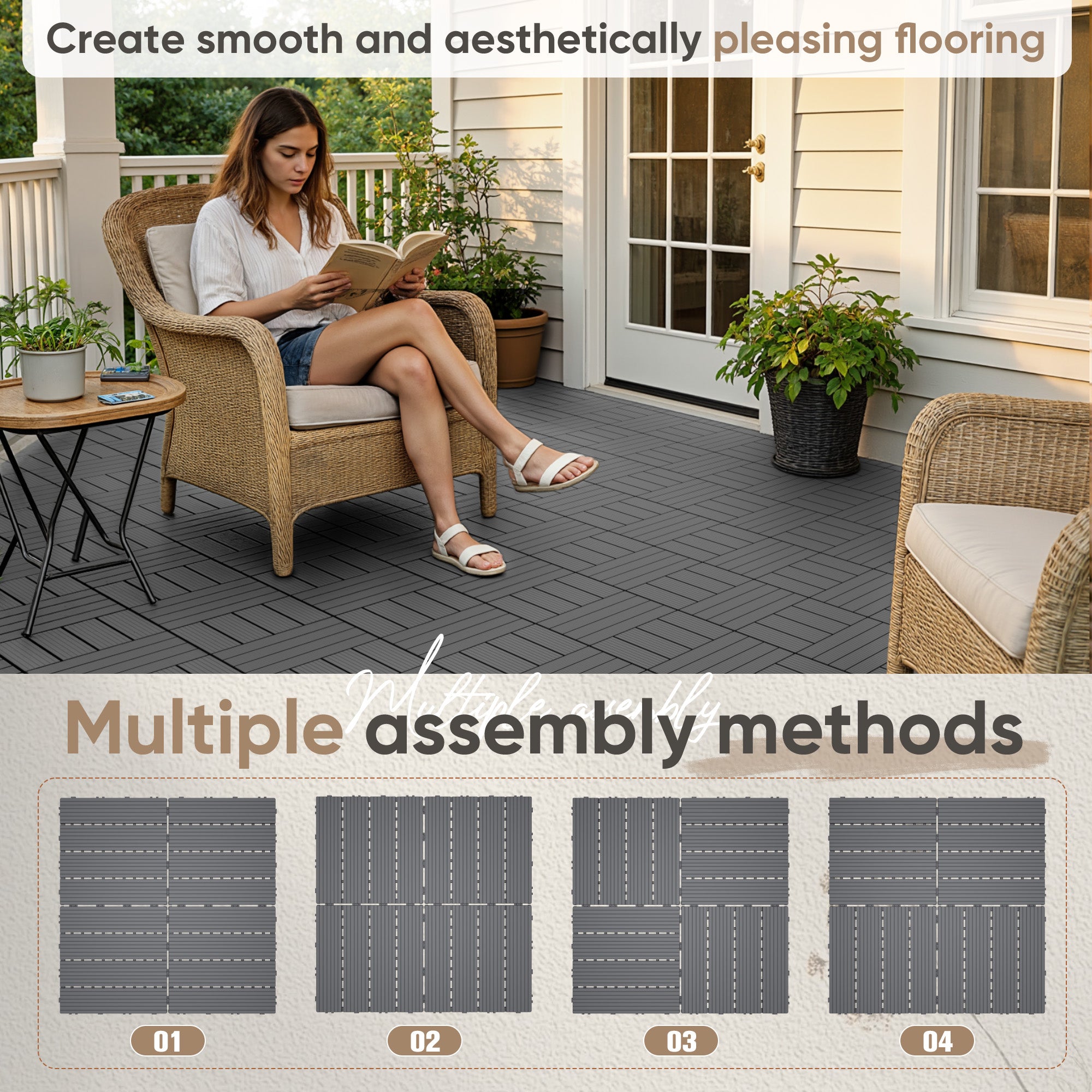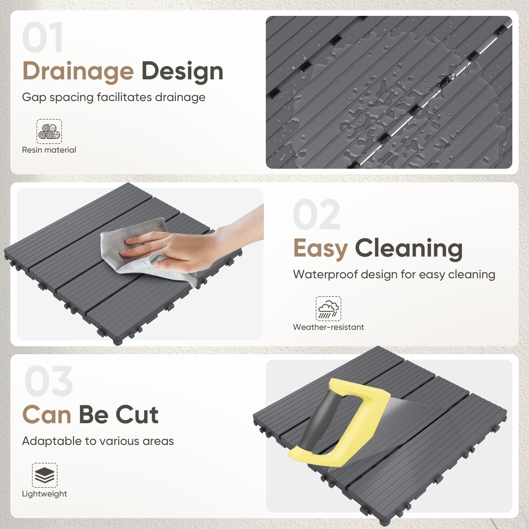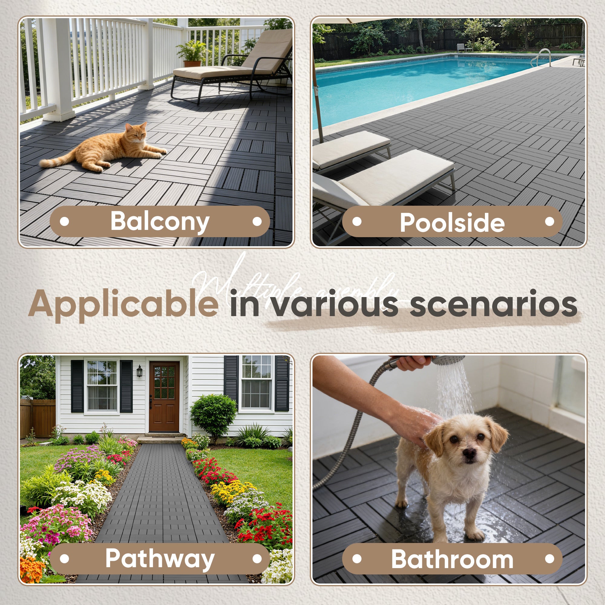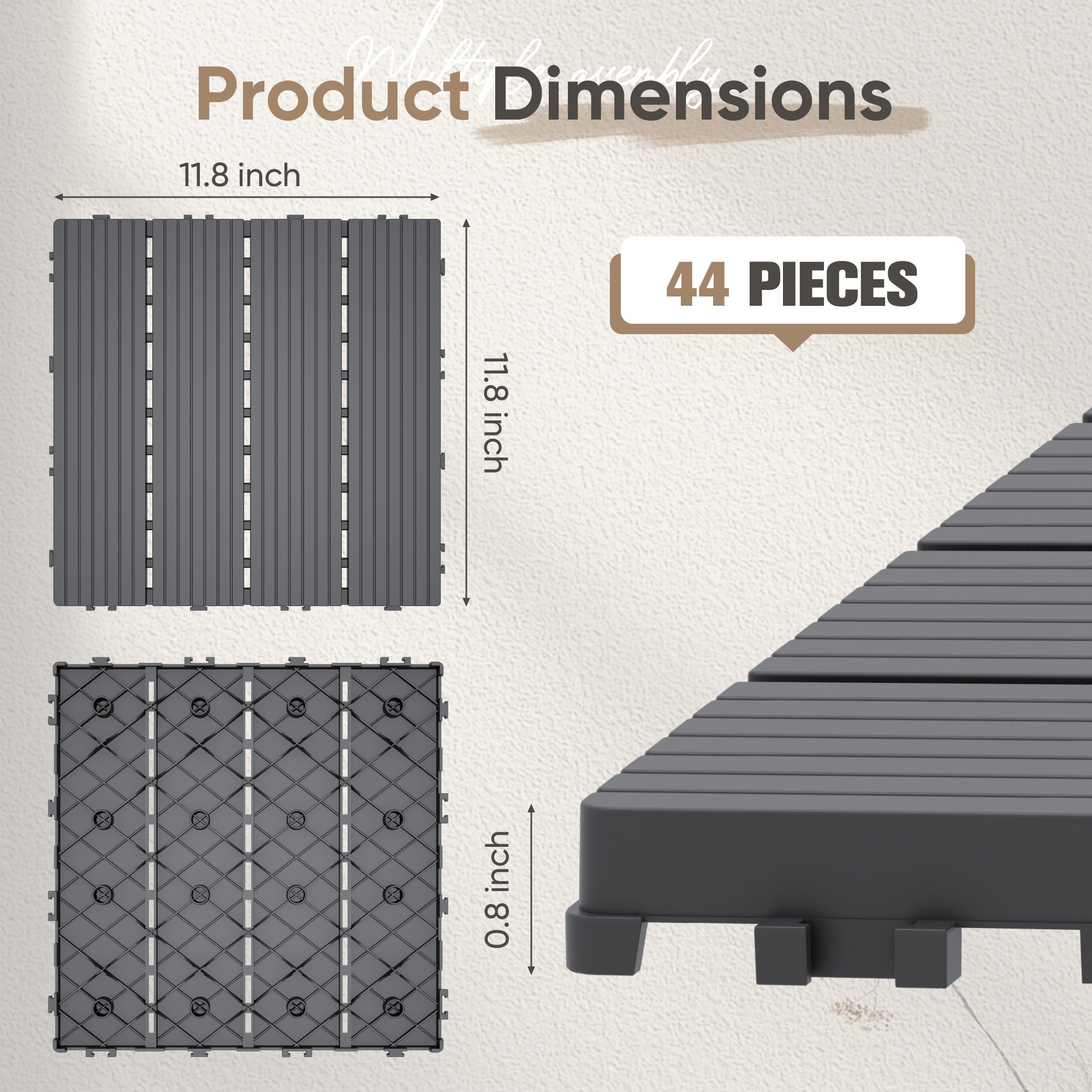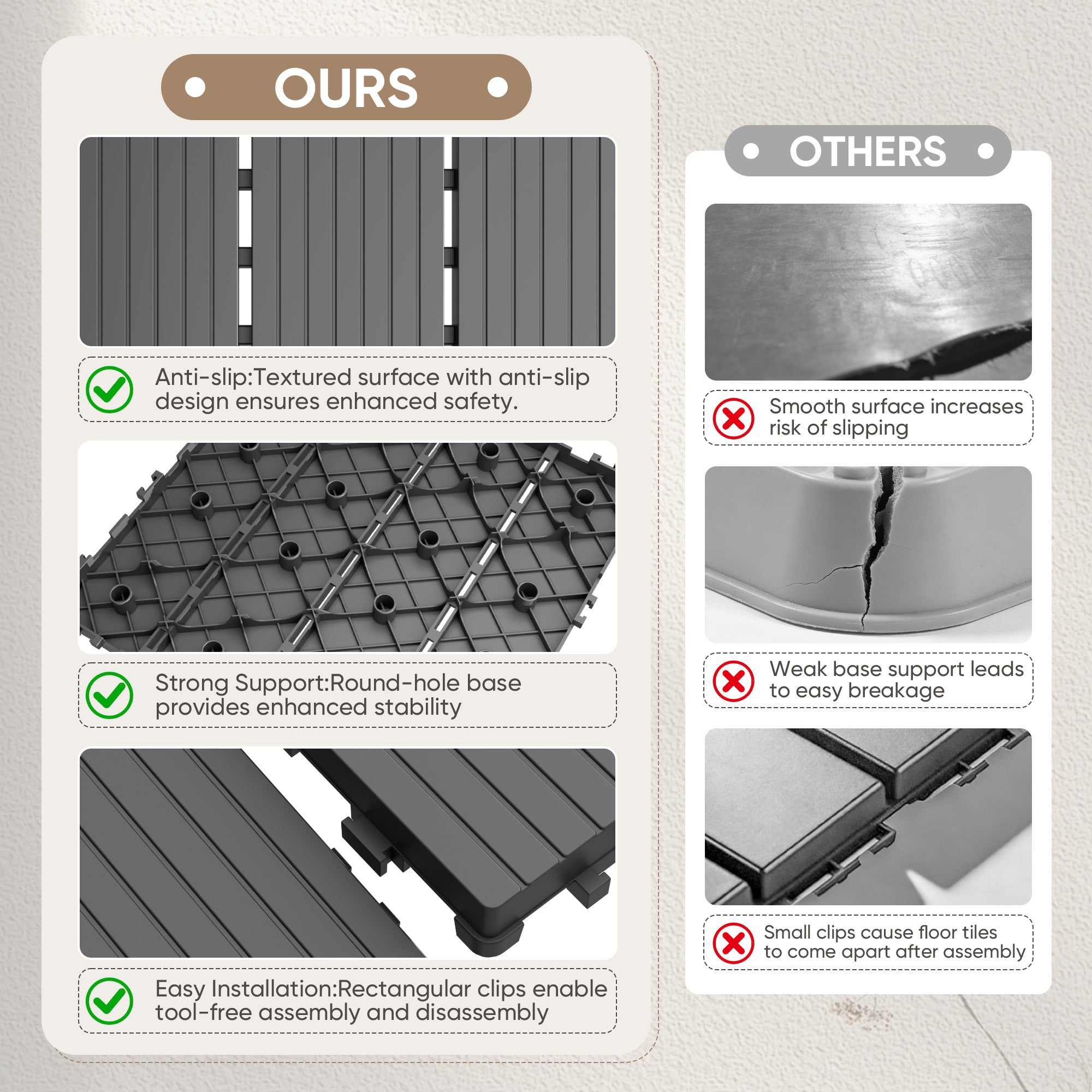 Homall 44-Pack Interlocking Deck Tiles, Outdoor Waterproof DIY Installation Flooring Slip-Resistant Surface for Backyards, Balconies, and Porches