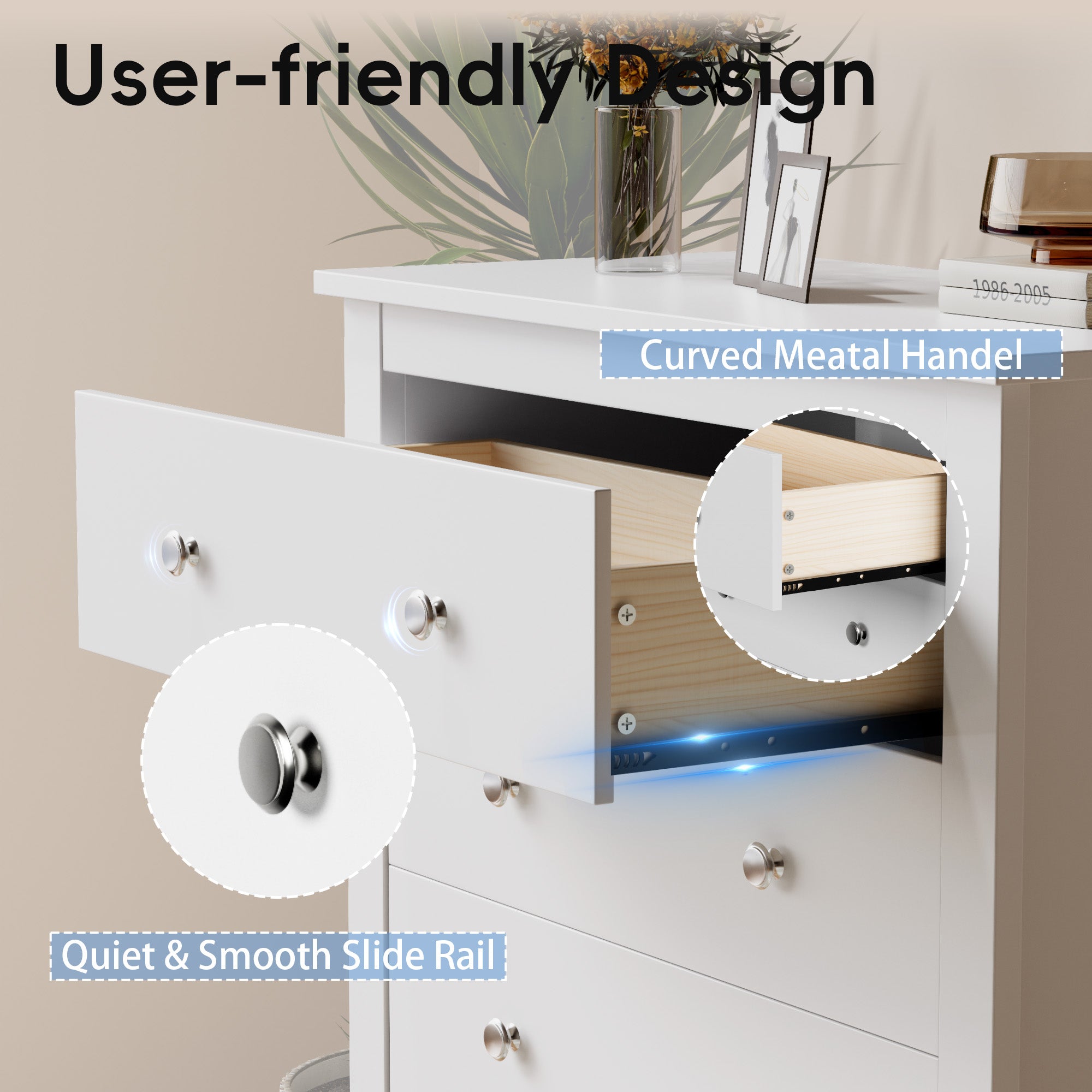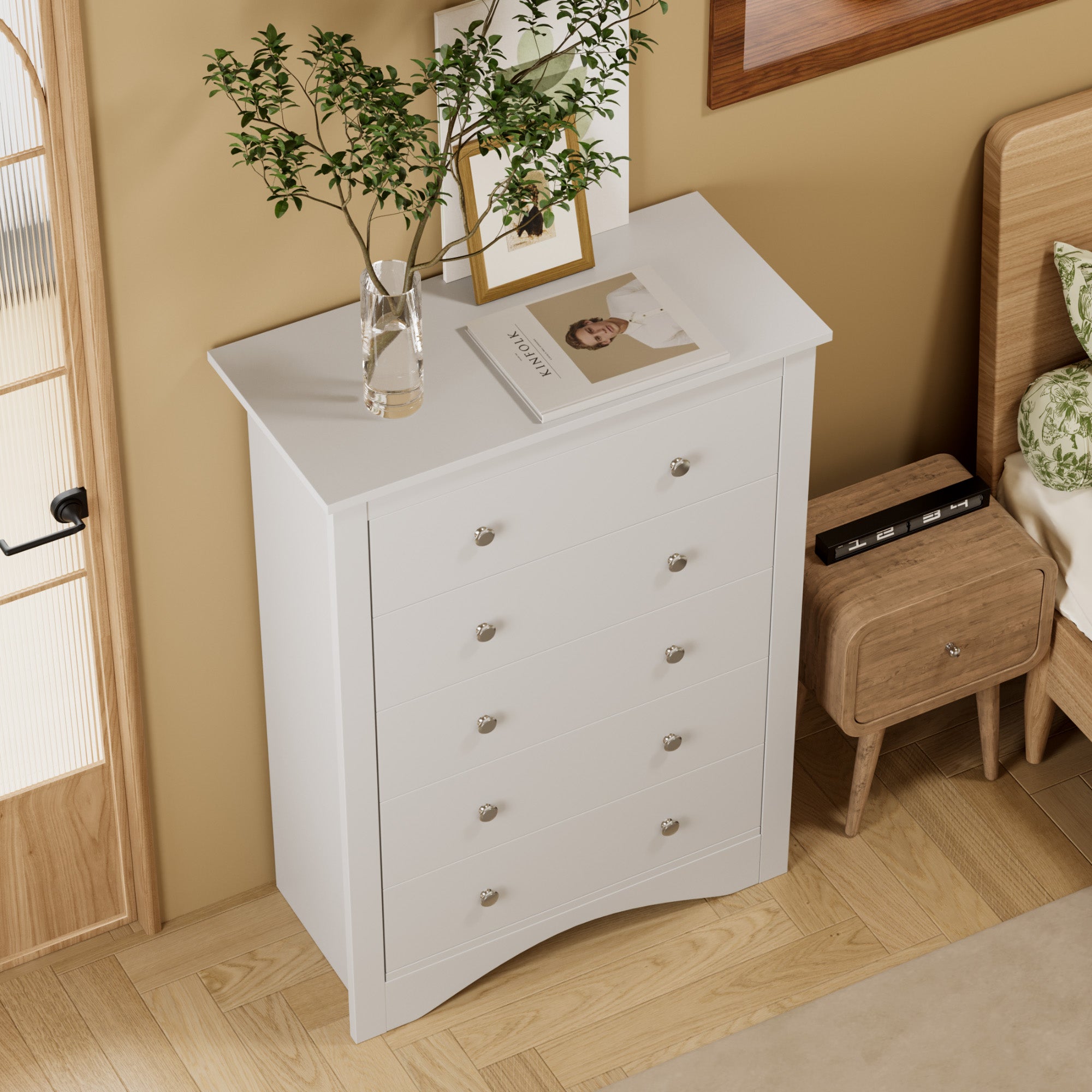 Homall 5 Drawer Dressers for Bedroom Equipped with an Anti-Toppling Device, Modern Wood Chest of Drawers Storage Cabinet