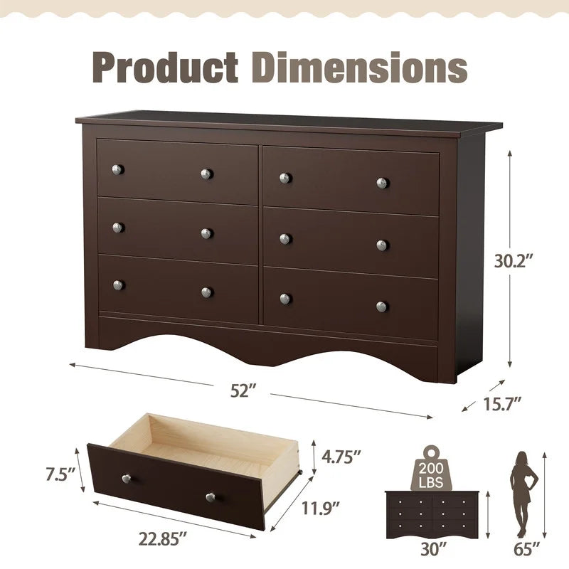 Homall 6 Drawer Double Dresser Equipped with an Anti-Toppling Device, Modern Wood Chest of Drawer for Living Room Bedroom