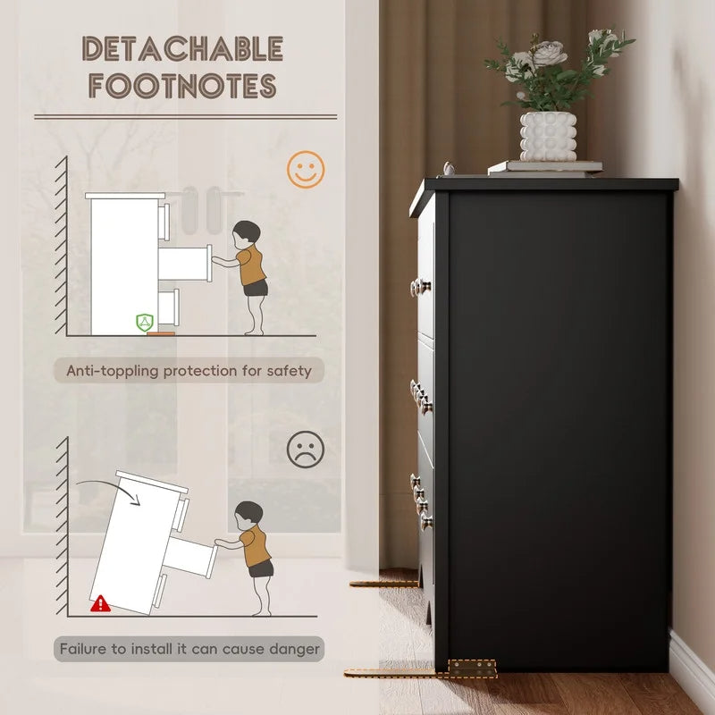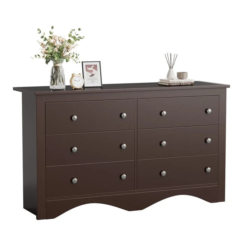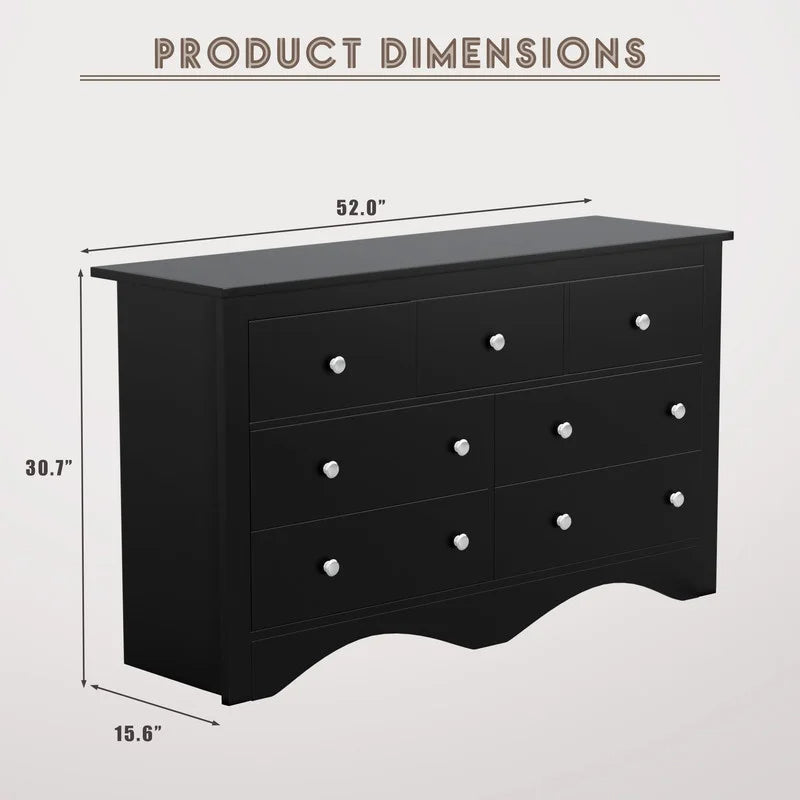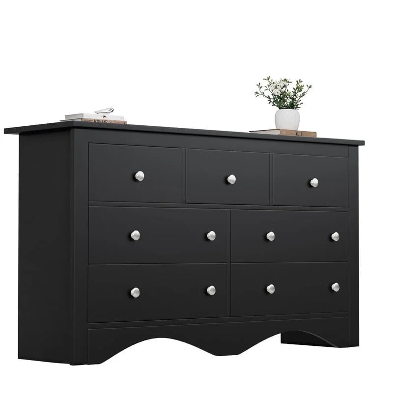 The Homall 6-Drawer Double Dresser in sophisticated black delivers exceptional storage capacity with contemporary elegance. This modern black dresser provides spacious storage with six smooth-gliding drawers. Made from quality engineered wood, it combines style and function. Quiet operation: Soft-close drawers with metal handles. Family safe: Built-in anti-tip device. Versatile size: Fits bedrooms, living rooms or offices (30.1"H x 51.9"W x 15.6"D). Durable finish: Scratch-resistant black surface. Ideal for organizing clothes and linens while adding contemporary style to your space.