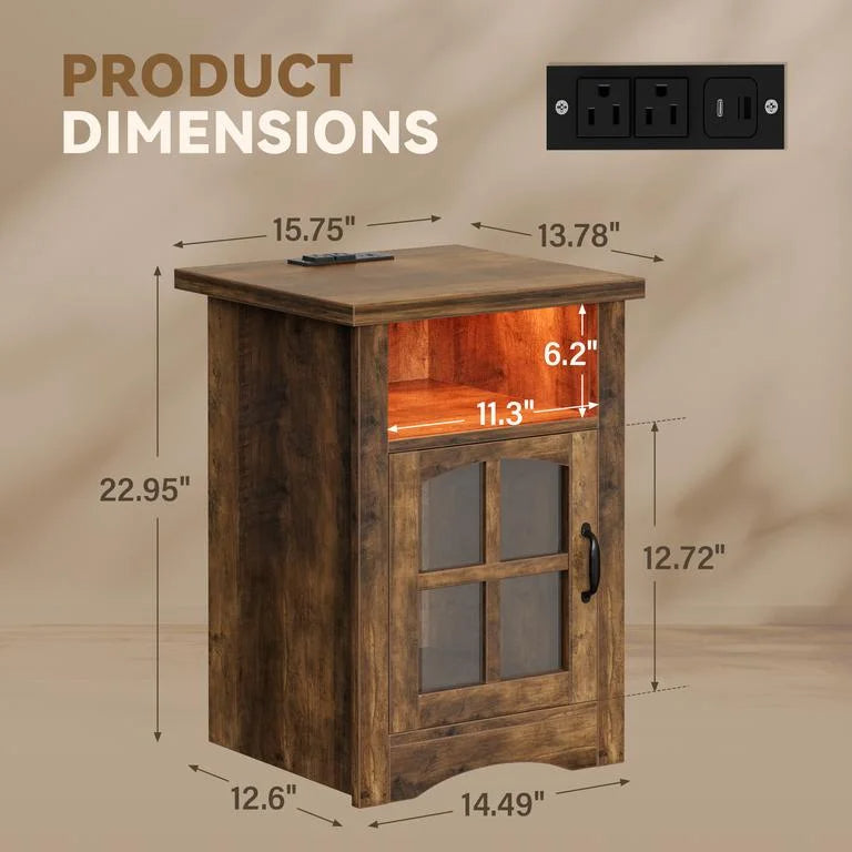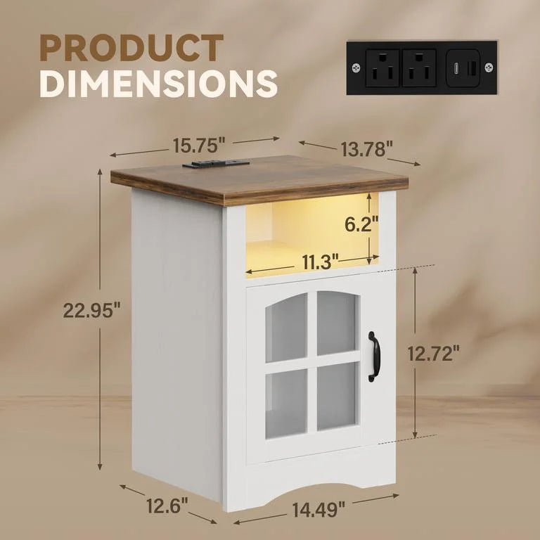 All-in-One Charging Hub & Ambient Lighting: This nightstand features a built-in charging outlet with USB, Type-C ports, and 2 AC plugs, plus integrated LED lights to create a soft glow or provide practical bedside illumination