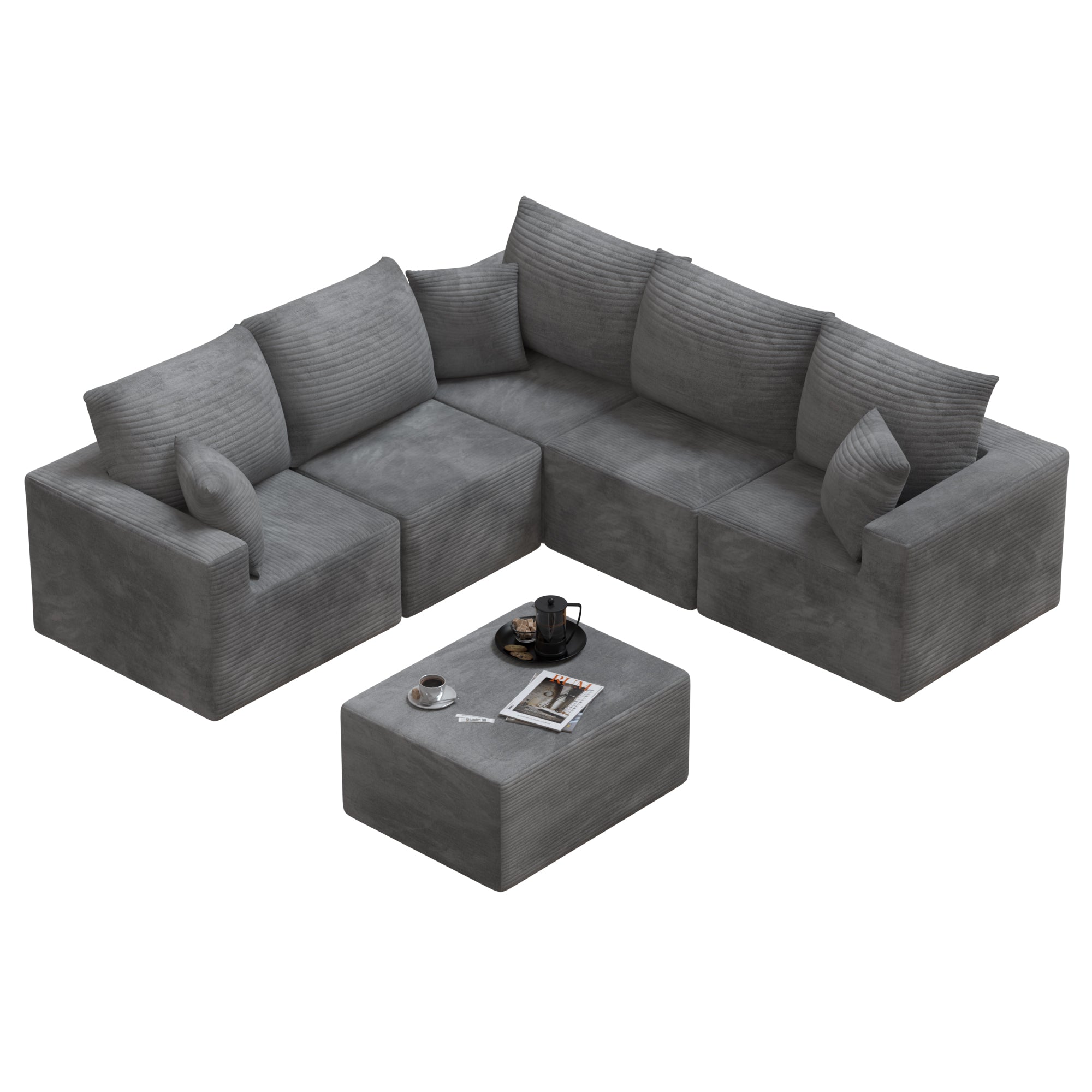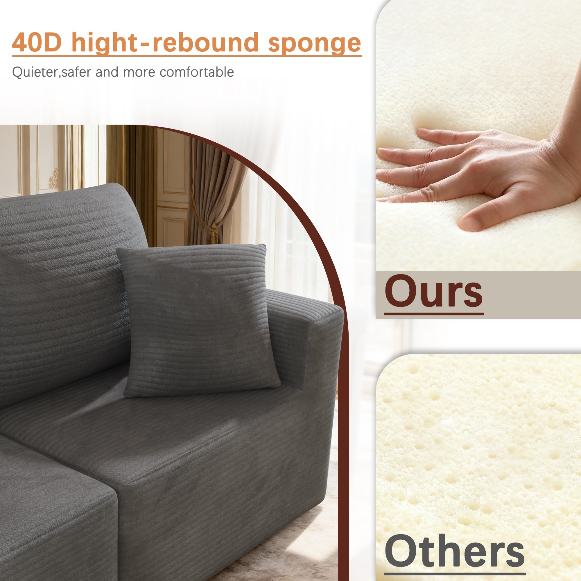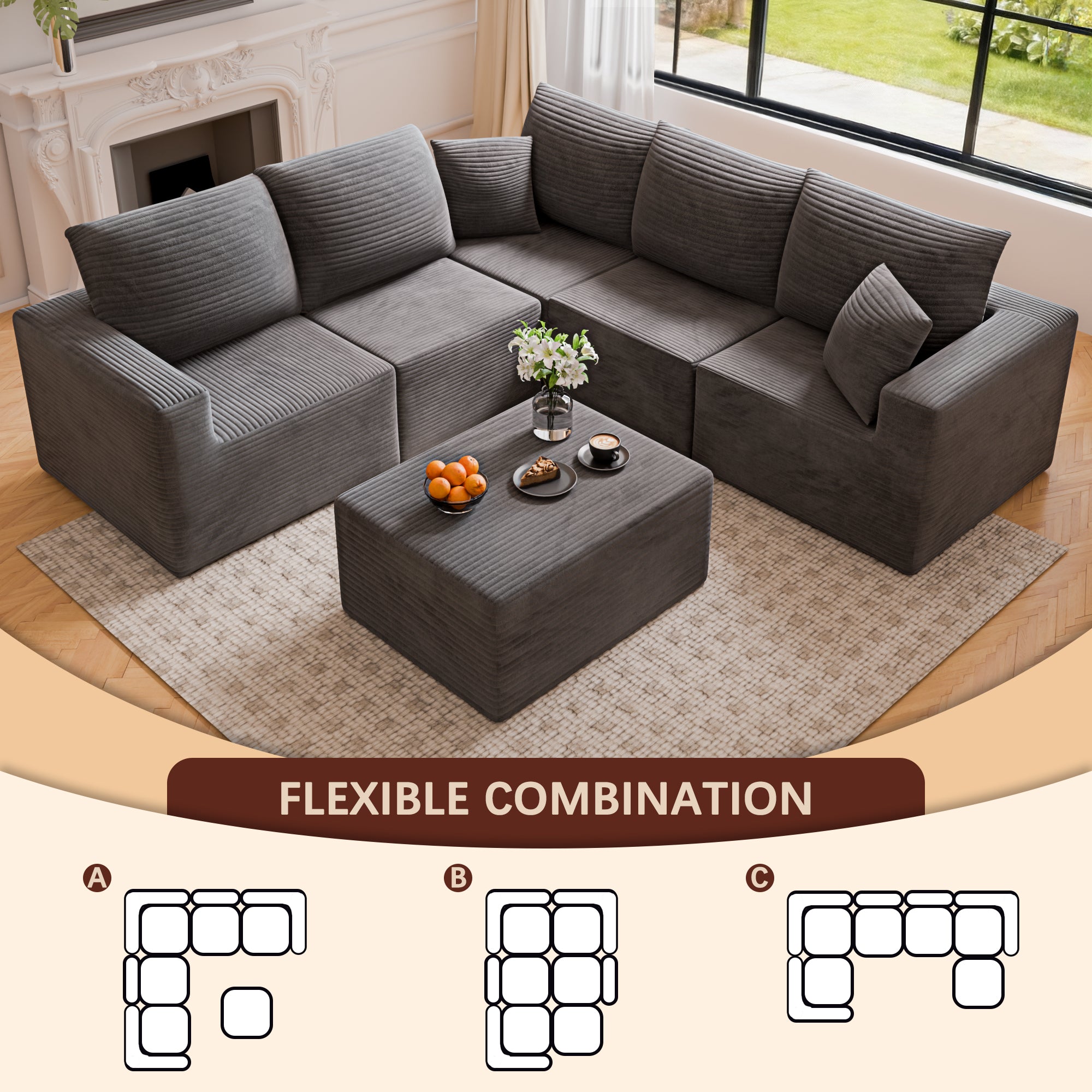 Homall’s V-haped Modular Sofa redefines modern home living with unparalleled adaptability and luxurious comfort 🛋. No complicated assembly steps required—it’s ready to use right out of the box! For optimal foam rebound, please allow the sofa to rest for 72 hours or more after unboxing ✨.Featuring a sleek V-shaped modular structure and premium corduroy upholstery 🧵, this sofa is crafted with high-resilience foam and a spacious seating area, delivering exceptional body support. Whether you’re lounging casually or stretching out fully, it ensures superior comfort at every angle .Ideal for placement against a wall or creative free-style combinations 🔄, it adds timeless elegance to any space—from living rooms and lofts to bedrooms 🏡. Sink into the velvet-soft corduroy fabric, which boasts a unique tactile feel and subtle luster, bringing warmth and year-round coziness to your home .Perfect for family living rooms, urban apartments, kids’ play areas, and more , this modular design offers outstanding flexibility, effortless reconfiguration, and maximum space utilization, perfectly catering to the diverse needs of today’s households