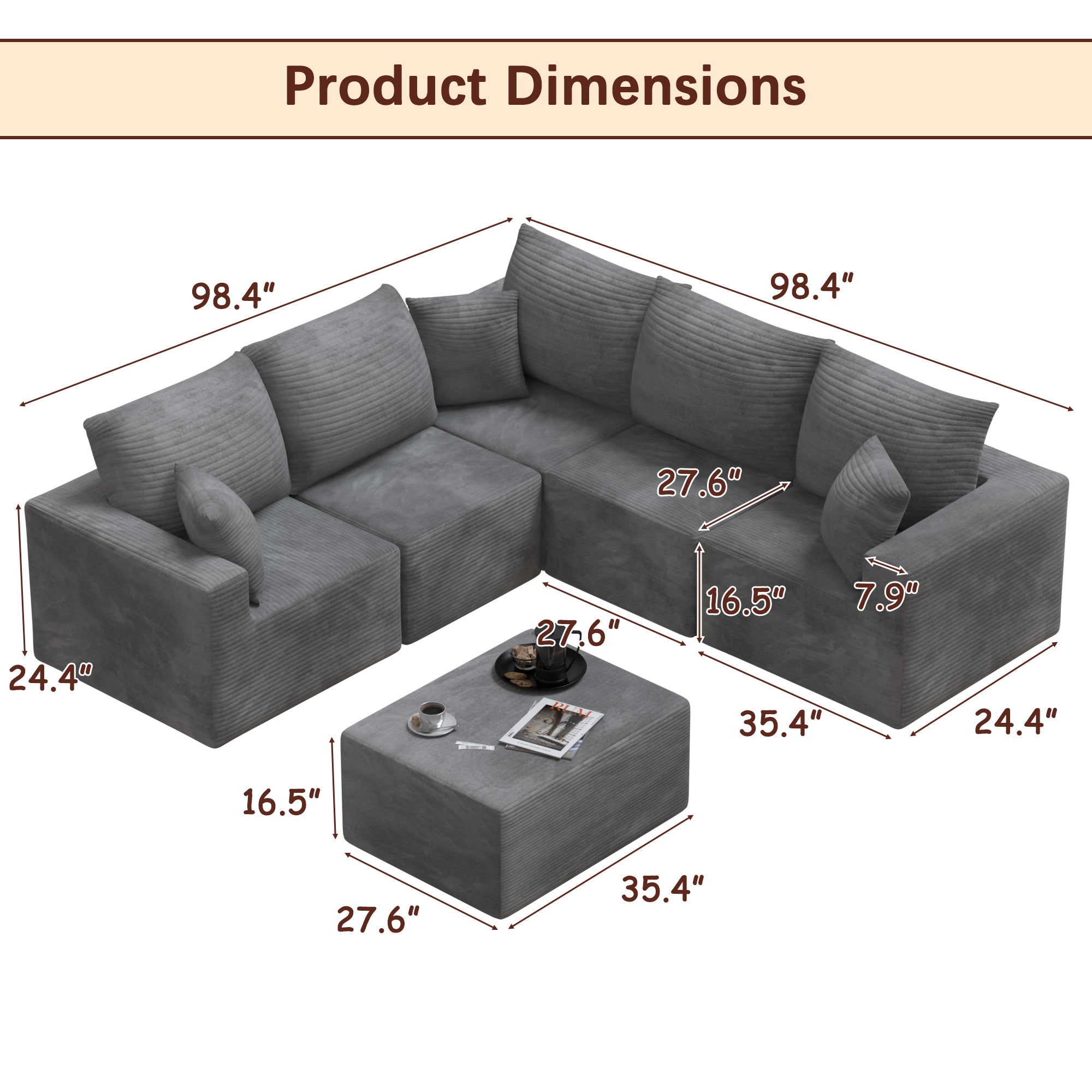 • 🧩【V-Shaped Free Combination】Boasting a modern V-style modular structure with smooth outlines and top-grade corduroy, it elevates home aesthetics while maximizing space. Whether placed against walls or as a standalone centerpiece, it adds enduring charm to family rooms, urban lofts, guest bedrooms, and more.