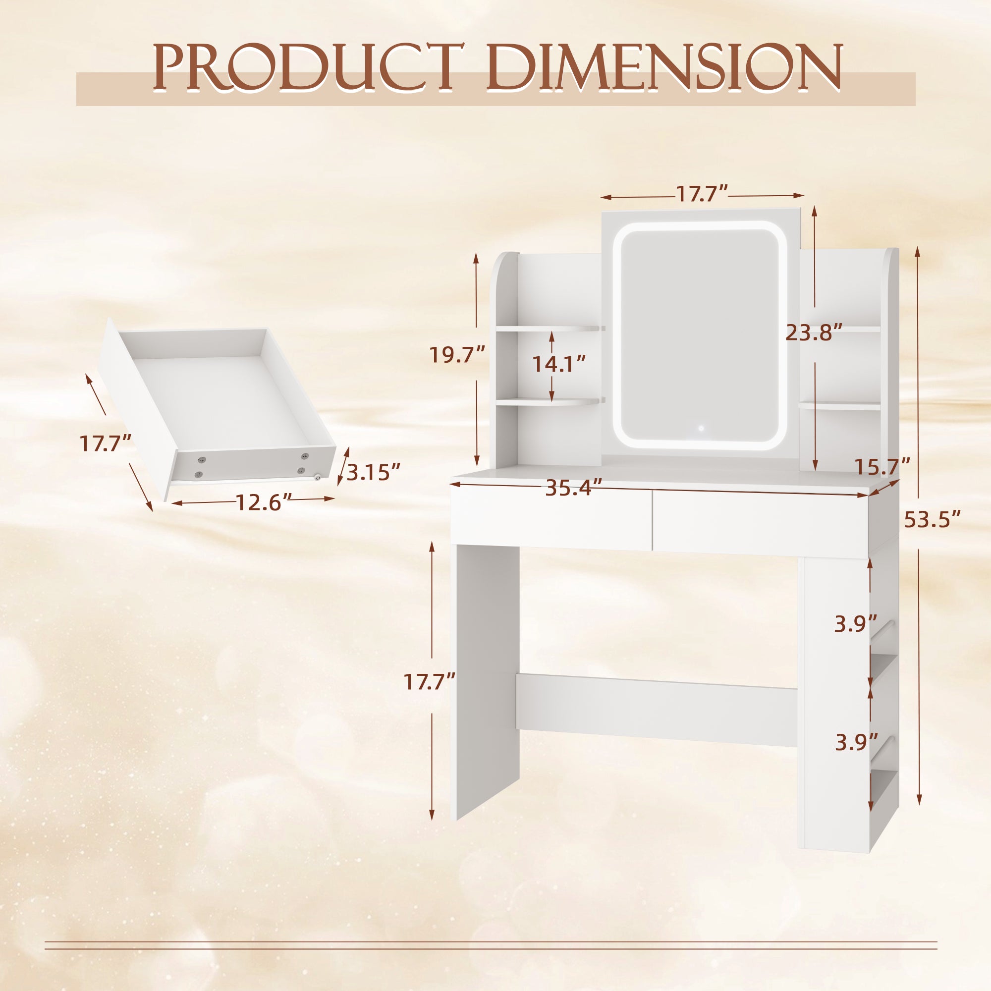 - Convenience at Your Fingertips: The spacious 36”(L) x 16”(W) tabletop provides easy access to daily essentials. Everything you need for makeup or grooming stays within reach, saving time and hassle.